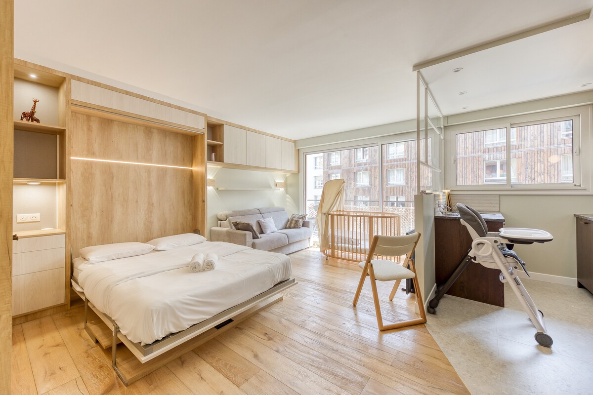 Apartament encantador, luxós, acollidor i lluminós de 31 m2 (1BD - 4P) amb una ubicació ideal a París 16, en una zona cèntrica, a prop de Trocadero i tranquil (a 5 minuts del metro Jasmin) amb totes les botigues locals. L'allotjament ofereix acabats moderns i càlids i un espai optimitzat: dormitori i sala d'estar (sofà llit) separats per una elegant partició amb un televisor integrat extraïble. Està totalment equipat (electrodomèstics, llençols, etc.) per poder gaudir de la teva estada amb tranquil·litat.