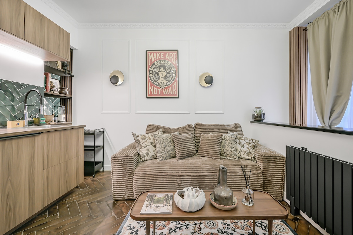 Encantador apartament situat al cor del Barri Llatí, al centre històric de París. Aquest elegant i càlid niu combina autenticitat i confort modern, amb bigues a la vista, pedres antigues, parquet i grans finestrals. Situat a un pas de la Sorbona, el Panteó i les ribes del Sena, ofereix un ambient tranquil i elegant, ideal per viure plenament l'esperit bohemi i cultural del Vell París.