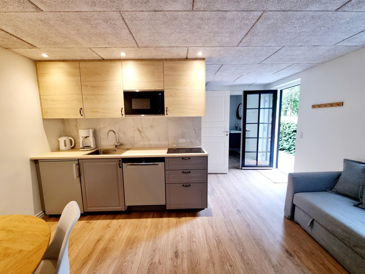 Gaudeix d'unes vacances tranquil·les en aquesta bonica casa de camp a només 20 minuts d'Aalborg. Lloguem la nostra casa d'hostes a la nostra finca. L'allotjament està situat a l'altre extrem de la nostra casa. Per tant, sempre hi som. L'apartament està situat a la primera planta i consta de cuina i sala d'estar, 2 dormitoris separats i un bany amb rentadora i assecadora A més, el meu marit dirigeix la seva empresa des d'aquesta adreça.