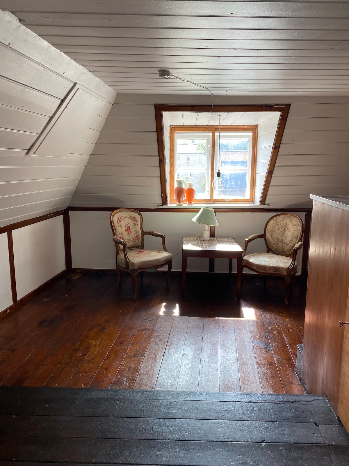 Super cozy, unique rooms in the attic. Enjoy the simple life in this peaceful and centrally located home. Are you a creative artistic soul who wants two exciting rooms in the attic in a historic, listed house, this is the opportunity for you. The house is located in a quiet area with green surroundings in the center of Aalborg. The rental consists of 2 connecting rooms and a smaller room, a small kitchenette, shared shower and toilet.