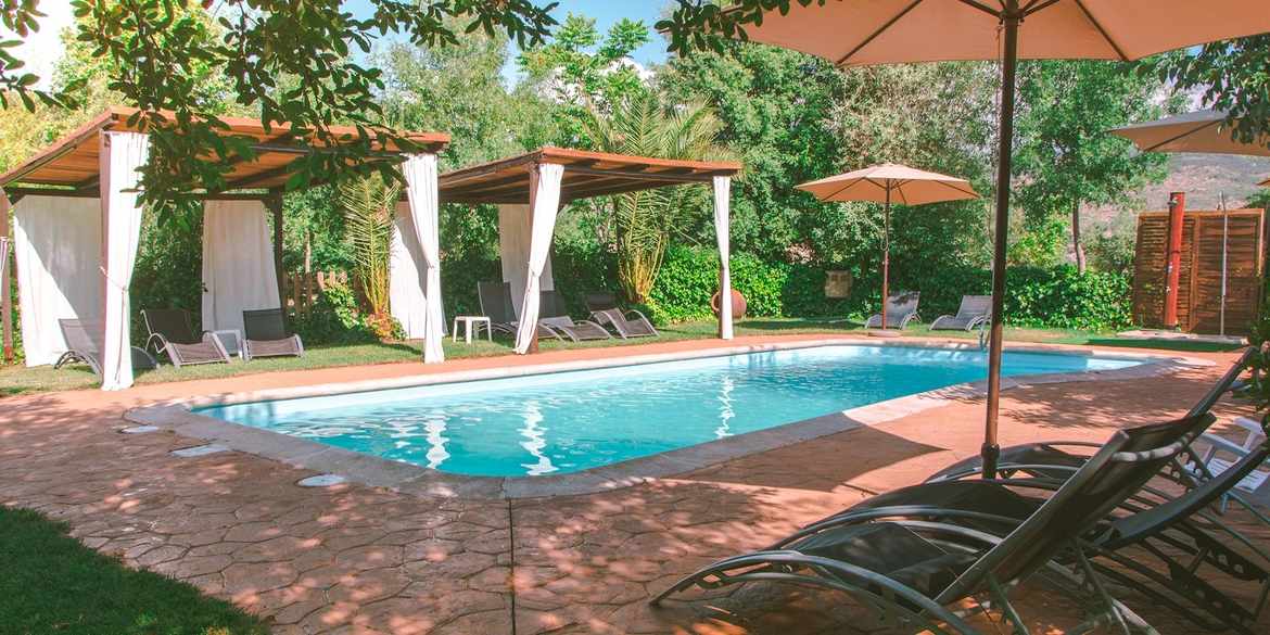 Casa amb piscina 100% autosuficient construïda sota una filosofia sostenible enmig d'una finca amb unes vistes espectaculars de tota la reserva natural de la Garganta dels Infiernos i de la vall del Jerte. La finca té un terreny de 2 hectàrees on es pot passejar entre cirerers, prunes i altres arbres fruiters, amb horts ecològics, piscines i un rierol que limita amb la finca. El cant dels ocells, el so de la caiguda de l'aigua del rierol, recull la plantació de l'hort... Naturaleza Pura TR-CC-00429