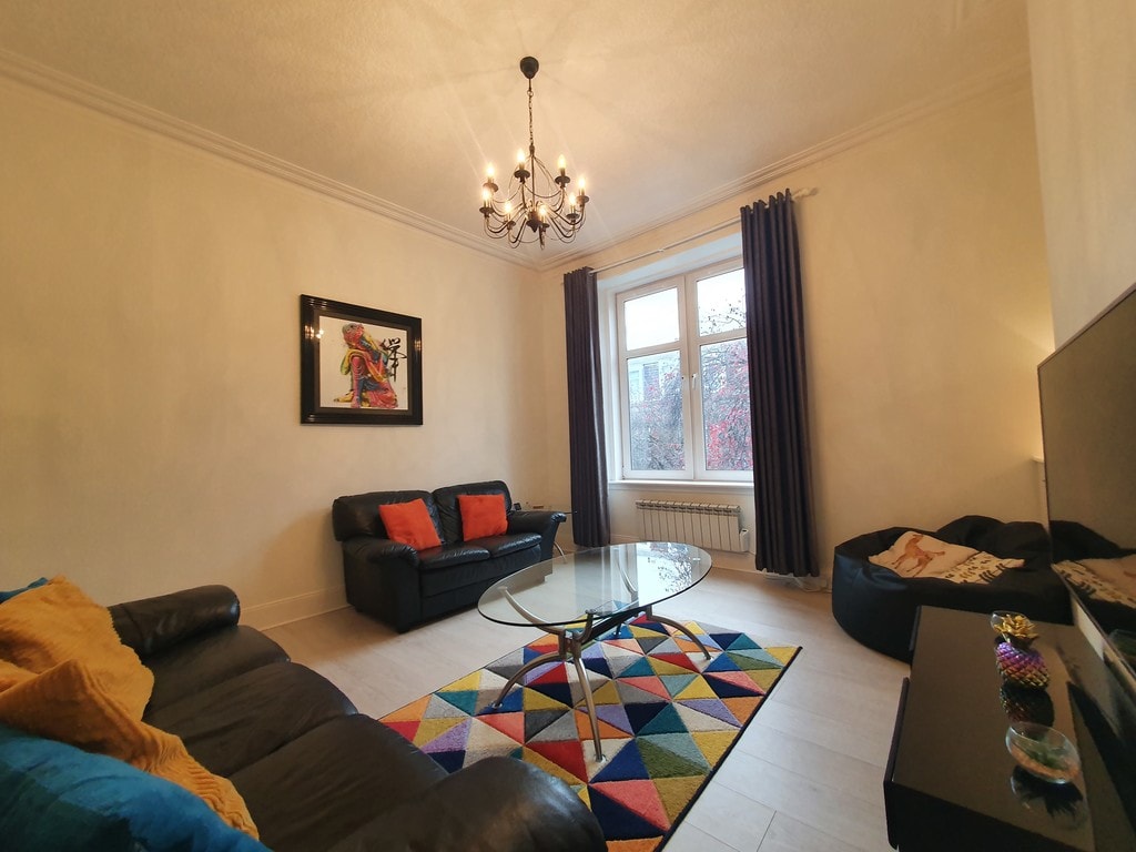 Aquest pis totalment moblat es troba a la elegant zona de Ferryhill d'Aberdeen. Consta d'un saló espaiós, una gran cuina menjador, 2 dormitoris i una dutxa/bany. Està a prop del centre de la ciutat i a 10 minuts a peu de les estacions de tren i autobús. Bonics restaurants, cinemes i botigues també estan molt a prop. La banda ampla molt ràpida i un televisor intel·ligent garanteixen la transmissió sense problemes. La propietat també disposa de la seva pròpia plaça d'aparcament privada. Una experiència fluida d'arribada i sortida està garantida.