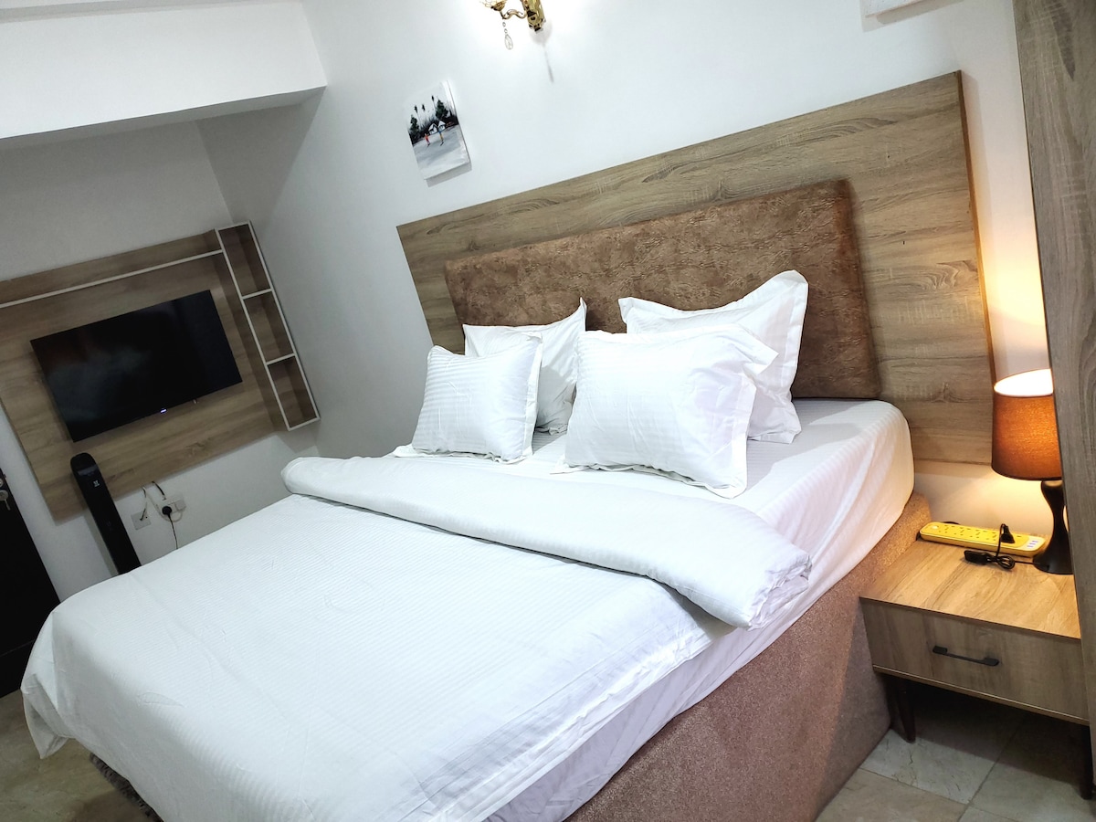 Descobreix la vida de luxe al barri més exclusiu d'Abuja. Aquest apartament amb servei d'1 dormitori ofereix electricitat les 24 hores, wifi ràpida i seguretat les 24 hores en un entorn tranquil i privat perfecte per a viatgers de negocis o parelles que busquen comoditat i conveniència. Situat al cor d'Abuja, estàs a pocs minuts d'ambaixades, restaurants de primera qualitat, centres comercials i centres de negocis clau, cosa que el fa ideal per a estades curtes o llargues. Gaudeix d'un entorn tranquil dissenyat per a una experiència sense estrès.