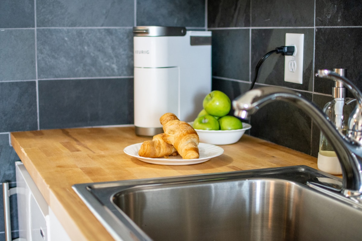 Aquest exquisit apartament té una estètica encantadora de color pastel on les obres d'art gràfics capturen l'ambient de cada habitació. Relaxa't a la sala d'estar oberta on les textures de fusta es troben amb els accessoris contemporanis i asseu-te al pati privat. El condomini Hilltop comparteix un cotxe amb un bon restaurant i un bar, "Mcgee 's 72". Així que pots passejar i no sortir mai del barri si vols prendre-ho amb calma! Si et sents aventurer, la nostra ubicació és la plataforma de llançament perfecta per explorar totes les butxaques fresques de Traverse City o els voltants. Estem a 3 minuts en cotxe de la platja i a poca distància de Turtle Creek Casino! Els hostes tindran accés complet a la casa i al pati. Hi ha un armari tancat on guardo alguns objectes personals i el garatge no és per a l'ús dels hostes. No hi seré. La porta té un pany amb teclat numèric. Rebràs un codi després de fer la reserva. Sempre estic disponible per correu electrònic o SMS si tens alguna pregunta o dubte. El pis es troba a prop del Grand Traverse Resort, que ofereix una fantàstica selecció de botigues i restaurants elegants. Més enllà, el centre de la ciutat, els cellers pintorescs i el brillant nord de Michigan es troben a poca distància en cotxe. Lyft és al nord de Michigan ara!!! També ho és Uber! Has de tenir les aplicacions per a aquests serveis d'ús compartit per treballar. Són molt assequibles. La ciutat també té diverses companyies de taxis i serveis de transport: Servei de taxi Cherry Capital Cab 3002 N Garfield Rd. i Brew Bus (cerveseries/visites a cellers) són dos exemples.