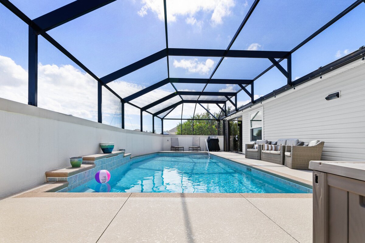 Et donem la benvinguda al teu refugi del poble! Gaudeix de la comoditat i l'estil en aquesta casa de disseny bellament decorada i totalment moblada amb tot el que necessites per gaudir d'una estada relaxant. Des de roba de llit acollidora fins a mobles moderns. Situada al poble d'Osceola Hills, a l'extrem de Moyer Blvd, just al sud de la ruta 44, aquesta espaiosa casa de 3 dormitoris i 3 banys (peus quadrats de 2021) disposa d'un garatge per a 2 cotxes i disposa d'un carro de golf. Estàs a pocs minuts de Brownwood (3 milles) i Sawgrass Grove (3 milles).