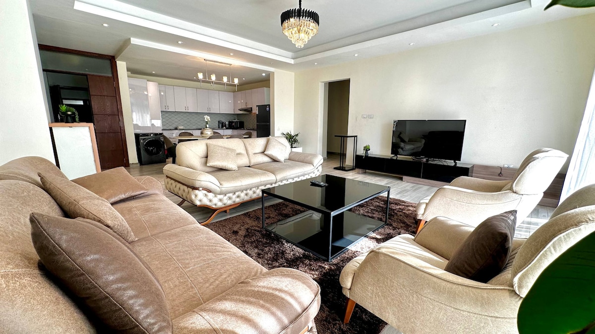 Gaudeix d'una experiència elegant en aquest allotjament cèntric. Allotja't en aquest apartament cèntric de 3 dormitoris a Bole Brass, Addis Abeba. A prop de restaurants, botigues i llocs d'interès, és perfecte per a famílies, parelles o viatgers sols. Gaudeix d'un espai lluminós i espaiós amb cuina totalment equipada, wifi ràpid, rentadora i seguretat les 24 hores. A més, els sistemes d'aigua i energia de seguretat garanteixen una estada sense problemes. Reserva una estada còmoda i sense complicacions avui mateix.
