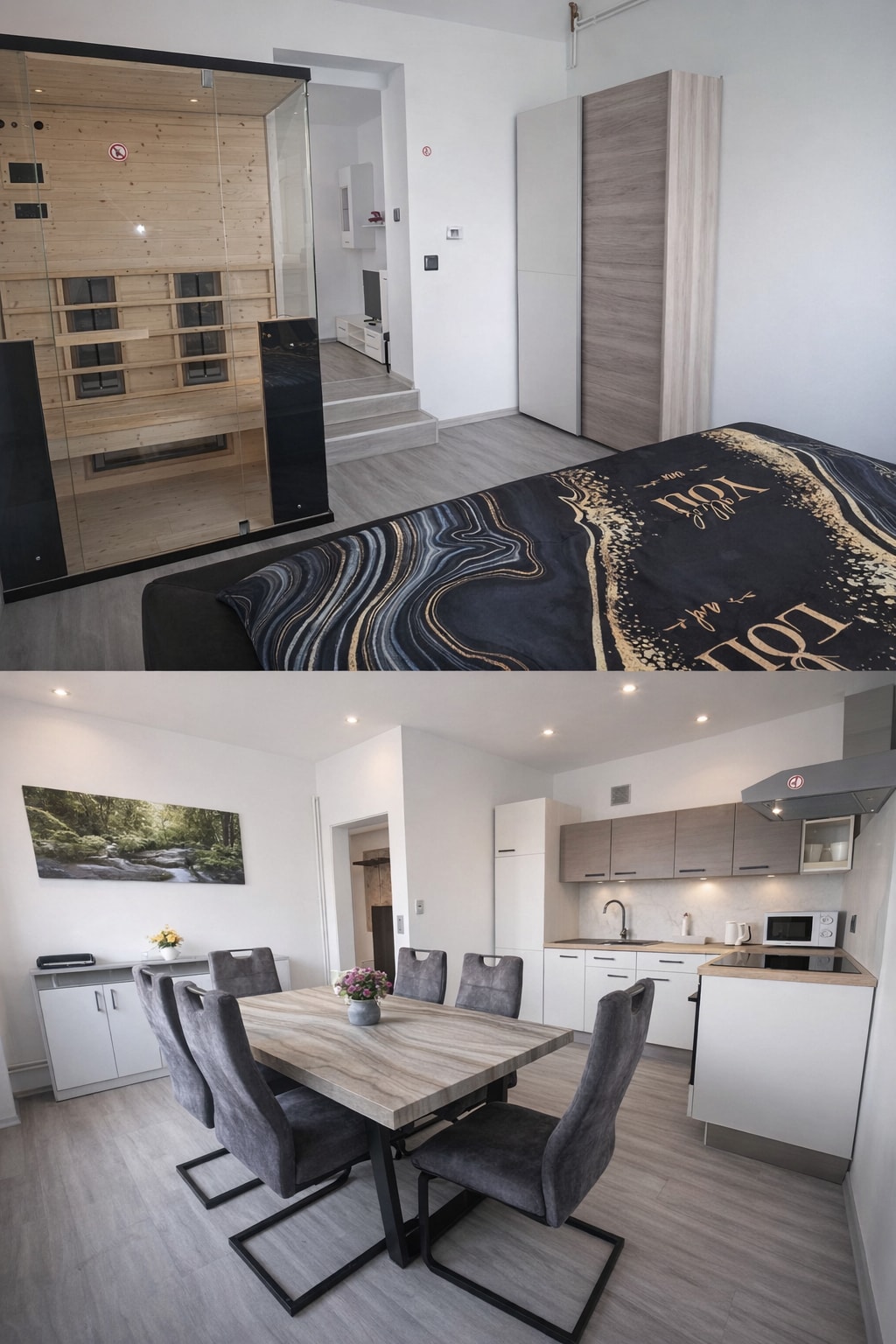 Aquest apartament està pensat perquè la teva estada a Maribor sigui inoblidable. Intentàvem mantenir l'estructura antiga original de l'edifici mentre renovàvem, de manera que l'espai de l'apartament només està dividit en tres zones. Però totes les habitacions són molt grans. Bàsicament, la sala d'estar, la cuina i el menjador són un gran espai. Hem afegit un mini espai d'oficina al dormitori per si viatges per feina i una sauna amb banyera al bany, perquè et sentis com si estiguessis en un balneari.