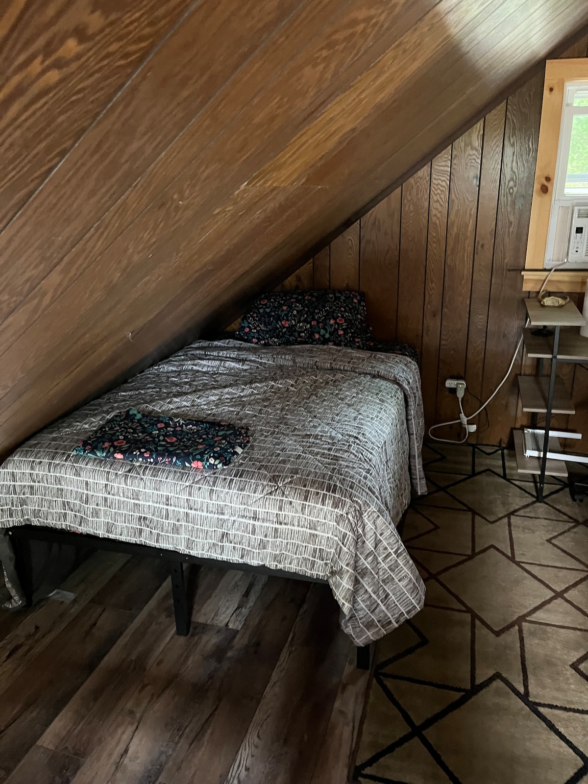 Welcome to a serene retreat nestled among a wooded forest, a gurgling brook, a candlelit fairy house and trail, the cutest and most loving pony ever and his equine friend, Ginger, a gentle chestnut mare. The charming cottage features warm wood floors, two inviting bedrooms downstairs, along with a spacious living area and a well-equipped kitchen. An additional bedroom upstairs offers extra comfort and privacy, accommodating at least two guests, and a beautiful view of the outdoor splendor.