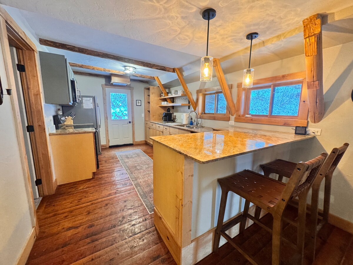 Aquesta caseta de tres dormitoris i amb dos banys, amagada a les muntanyes i a pocs passos del bosc nacional de Bridger i del riu Greys, aquesta caseta de tres dormitoris i dos banys et permet triar la teva pròpia aventura. Aquest refugi apte per a famílies es troba a 36 milles en cotxe pel bell barranc del riu serp fins a Jackson Hole. Alternativament, pots fer una cua en qualsevol dels tres rius propers, fer senderisme, passejar pels senders, anar en vaixell a l'embassament o fer ràfting en aigües braves i caiac . Alguna cosa per a tothom!
