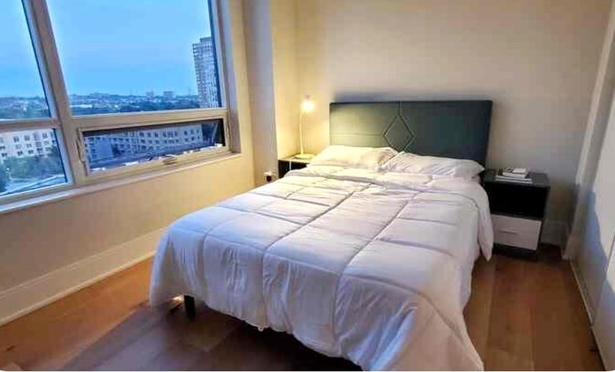 Fes que sigui senzill en aquest lloc tranquil i cèntric a prop del Centre de Ciències d'Ontario. Perfecte per a solters o parelles. A poca distància a peu del trànsit, els supermercats i els serveis de l'edifici inclouen gimnàs, sauna i pati exterior. El lloguer inclou: - Llit «queen size» - Un bany complet amb rentadora i assecadora a l'habitació. - Tovalloles i llençols nets - Internet d'alta velocitat - Sofà amb televisor (Firestick) - Aparcament de pagament a l'interior Normes de la casa: - Sense sabates - No es permet fumar. - No s'admeten animals de companyia - Sense festes - No més de 2 persones.
