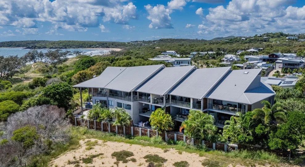 Imagine drifting off to sleep with the ocean's soothing rhythm on one of the closest balconies to the beach in Agnes Water. Loka Santi is an exclusive boutique complex nestled in the serene Agnes Water/1770 region. This modern 3-bedroom, 2-bathroom penthouse retreat features stylish amenities, a communal heated pool, and is just steps from the beach. With space for up to 6 guests, it’s the perfect escape for families, couples, or small groups seeking relaxation, comfort, and coastal charm.