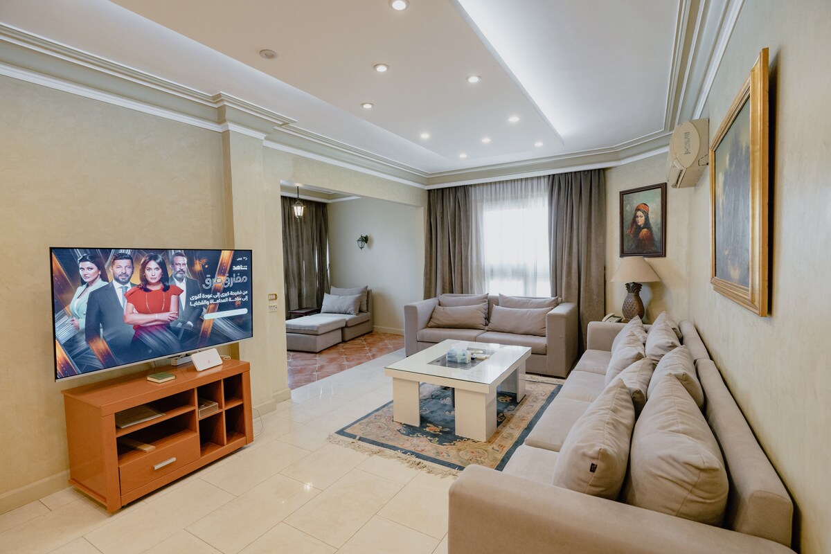 Et donem la benvinguda a casa teva a Mohandseen, perfecta per a famílies i grups del Golf. Aquest apartament espaiós de 3 dormitoris té capacitat per a 7 persones còmodament, amb dos balcons grans que ofereixen aire fresc i vistes relaxants. Situat en un dels barris més cèntrics i exclusius de Giza, estaràs a prop de botigues, cafeteries i a poca distància en cotxe de la cornisa del Nil, Zamalek i Dokki. .