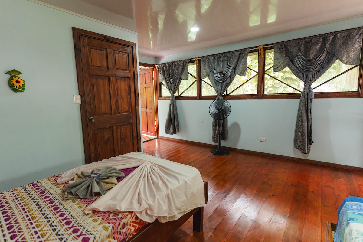 Econòmic, rústic i bonic! Una estada autèntica entre els aiguamolls i la selva tropical. Les habitacions són senzilles però netes amb matalassos nous. La casa està equipada amb la seva pròpia cuina amb l'equipament bàsic: cuina de gas amb forn, nevera, cafetera, torradora i olla d'arròs. També oferim àpats deliciosos amb menjar tropical i local al nostre jardí. Oferim un ampli coneixement de les activitats i de les millors aventures. El nostre objectiu és fer que la teva estada amb nosaltres sigui el millor dia a Costa Rica.