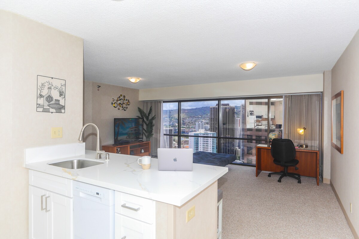 Experience all that Hawaii has to offer in this beautifully renovated condo. This high floor unit boasts expansive ocean & harbor views with gorgeous daily sunsets. Conveniently located in central downtown, guests are welcomed to share the many amenities in the same building managed by the Aqua Aston Hotel. Tasty eateries, 24 hour fitness, department stores and open markets are all within walking distance. Whether you're here for business or on vacation, this is a stay you won't forget.