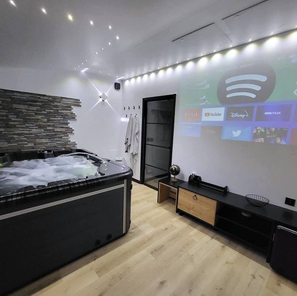 ESTUDI - Habitació de l'amor Ideal per a un descans relaxant Relaxa't al jacuzzi amb els seus massatges i gaudeix del projector de vídeo. Accés a plataformes: Netflix/Amazon Prime/YouTube/Disney+ A prop de la sortida de l'A26 (Courbes), a mig camí entre Laon, Saint-Quentin i Chauny Entrega de claus No dubtis a posar-te en contacte amb nosaltres per obtenir més informació sobre els nostres serveis addicionals. Preu només per a 2 persones