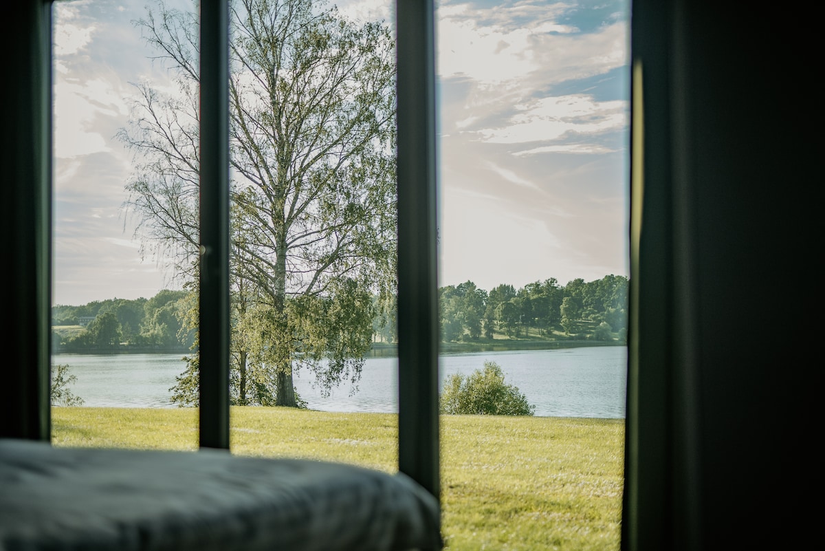L'allotjament està situat a la riba del riu Daugava, amb una bonica vista panoràmica. Just davant de la casa, al Daugava, hi ha illes amb hàbitats naturals intactes i una gran varietat d'aus aquàtiques. La casa de vacances té una zona de terrassa amb una vista preciosa del riu. Per un suplement, pots gaudir d'una sauna o d'un jacuzzi, així com fer servir equipament d'activitats aquàtiques o terrestres. Hi ha embarcacions a pedals, planxes elèctriques (efoil), una embarcació, planxes de surf de rem, escúters Vespa i bicicletes elèctriques.