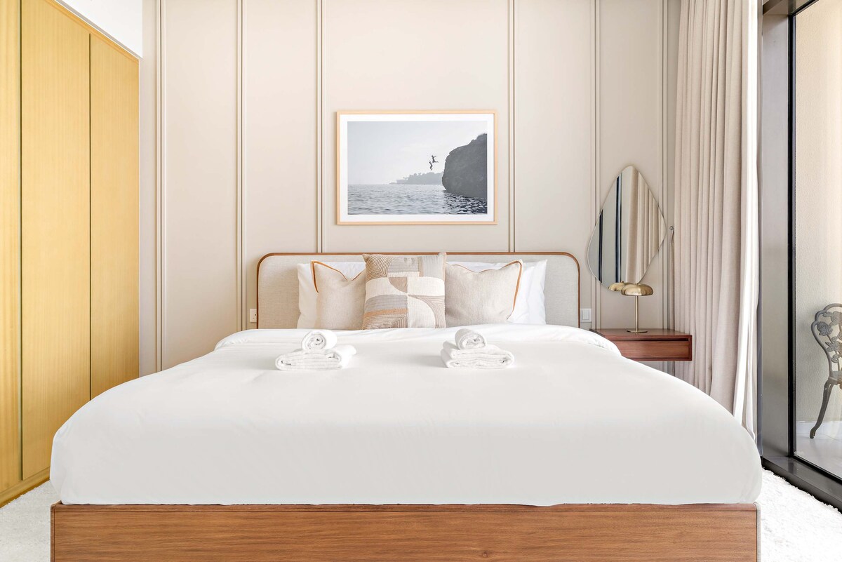 Viu de luxe al Port de La Mer! Gaudeix d'un llit «king size» Four Seasons amb matalàs i llençols de primera qualitat, sofà llit per a 2 persones, llar de foc de vapor segura, assecador de cabells Dyson, cafetera De'Longhi i estora de ioga. La taula del menjador funciona com a espai de treball. Piscina, aparcament i accés privat a la platja inclosos. A uns passos del mar, cafeteries a prop, a 15 minuts del centre comercial Dubai Mall i a 20 minuts de l'aeroport, perfecte per als hostes que busquen alguna cosa especial!