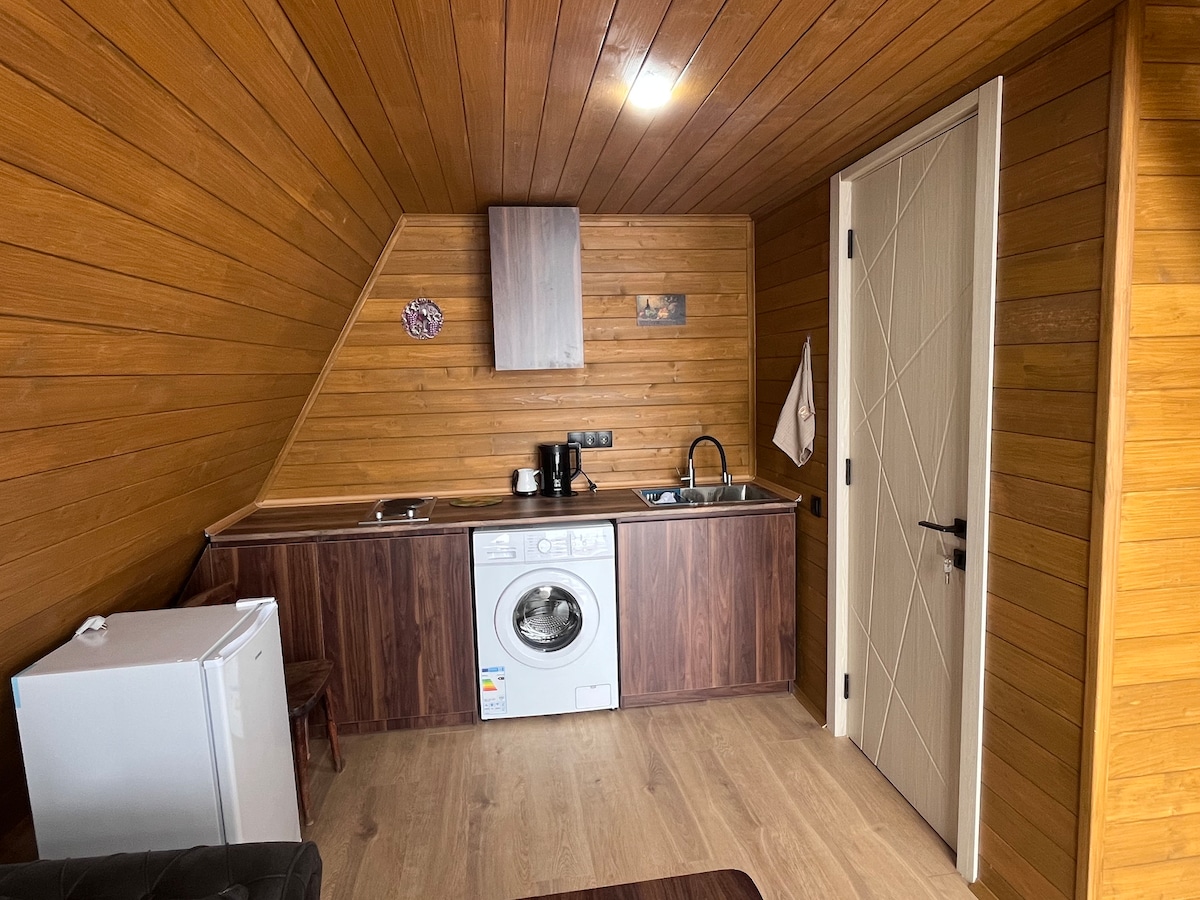 Escape to our cozy A-frame cottage on the shores of Lake Tabatskuri Located over 2,000 meters above sea level, Aurora Cottage offers stunning lake and mountain views in the heart of the Georgian highlands. The cottage features a cozy loft bedroom with a king-size bed, an open-plan living area with a sofa bed and kitchenette, and a private balcony or terrace. Guests enjoy full privacy and a garden area. Seasonal activities include boating, jet skiing, horseback riding, and winter snowmobile tours