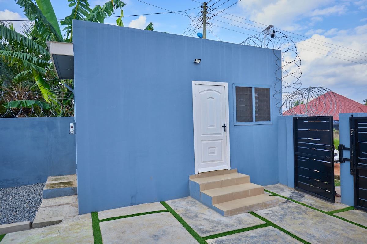 Crea records amb aquest allotjament únic i apte per a famílies. La propietat compta amb un ampli espai obert a terra obert AMB un disseny de ranxo modern amb un pati al terrat. La propietat està assegurada amb una tanca elèctrica alta amb un obridor de portes automàtic. Cada dormitori té el seu propi bany complet privat i un bany per als hostes. Totes les carreteres asfaltades des de l'aeroport fins a la vil·la (a 35 minuts en cotxe) al Jardí Botànic d'Aburi, molt a prop del Servei Nacional de Bombers.