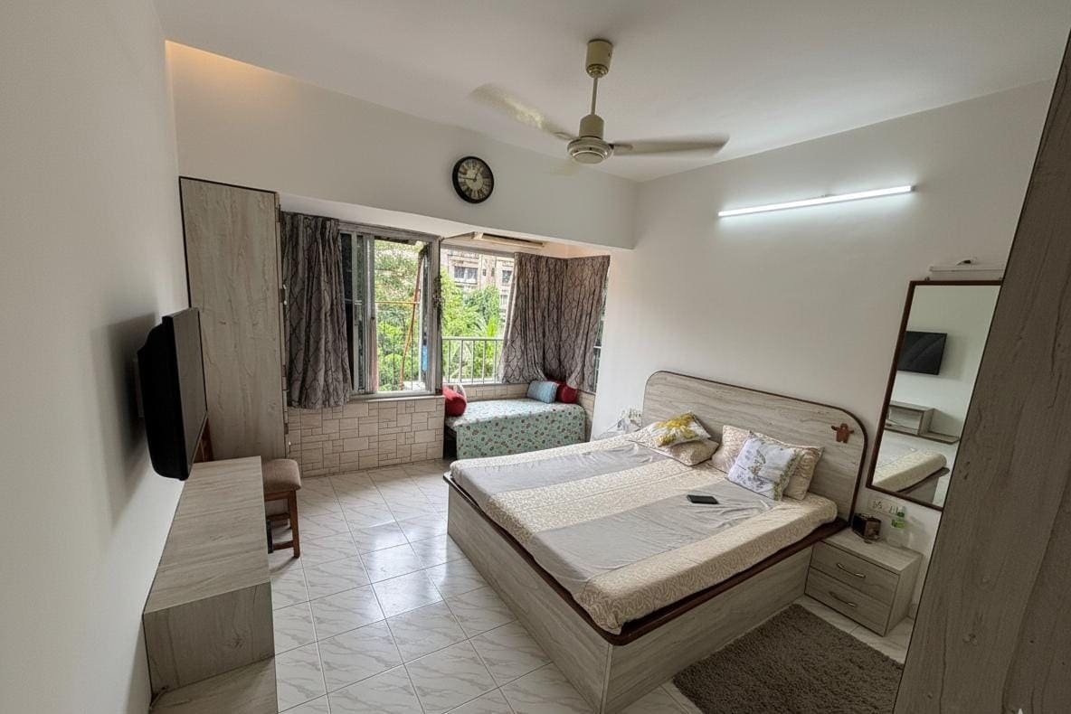 Dorm en un pis acollidor i compacte d'1 habitació a «TOP», amb vistes a la frondosa vegetació de Versova! Perfecte per a 2 persones! Aquest allotjament és lluminós, airejat i tranquil, i està banyat de llum natural: un refugi tranquil del bullici de la ciutat. Gaudeix del cafè del matí a la finestra o relaxa't després d'un dia fora. A només 15 minuts de la platja de Versova, de cafès acollidors i de la vibrant vida nocturna de Bombai, ofereix l'equilibri perfecte entre comoditat, encant i conveniència. Relaxa't i fes d'aquesta escapada serena la teva segona llar :)