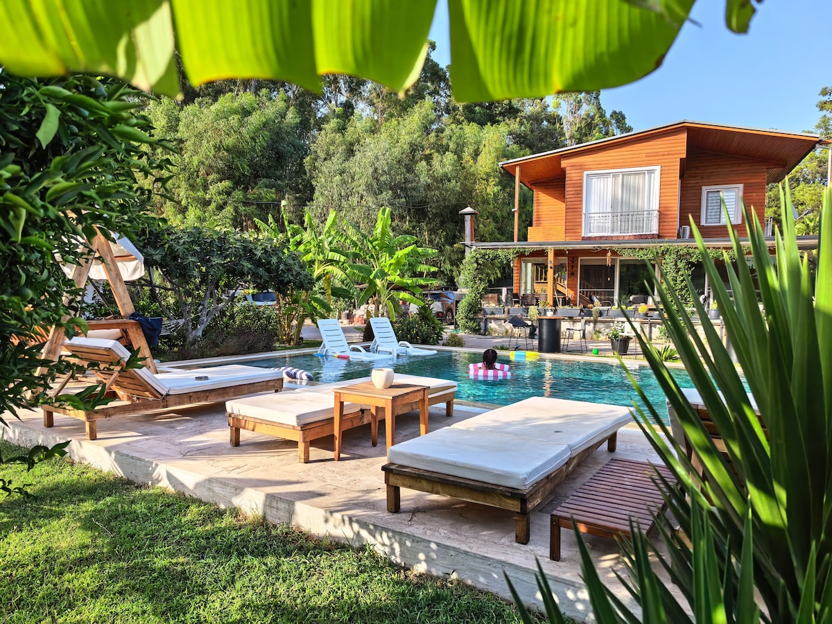 A la natura. A prop de Dalyan. Una casa amb jardí independent i piscina privada. Consta de 2 dormitoris, una cuina oberta i un bany. La nostra casa, de 75 metres quadrats, té aire condicionat a totes les habitacions. Tenim una terrassa al sol, una barbacoa i una taula perquè puguis menjar al jardí. Hi ha internet, televisió, rentadora, rentavaixella... És una casa neta, ordenada i en bon estat i ha començat a funcionar aquest any. Hi ha aparcament gratuït.