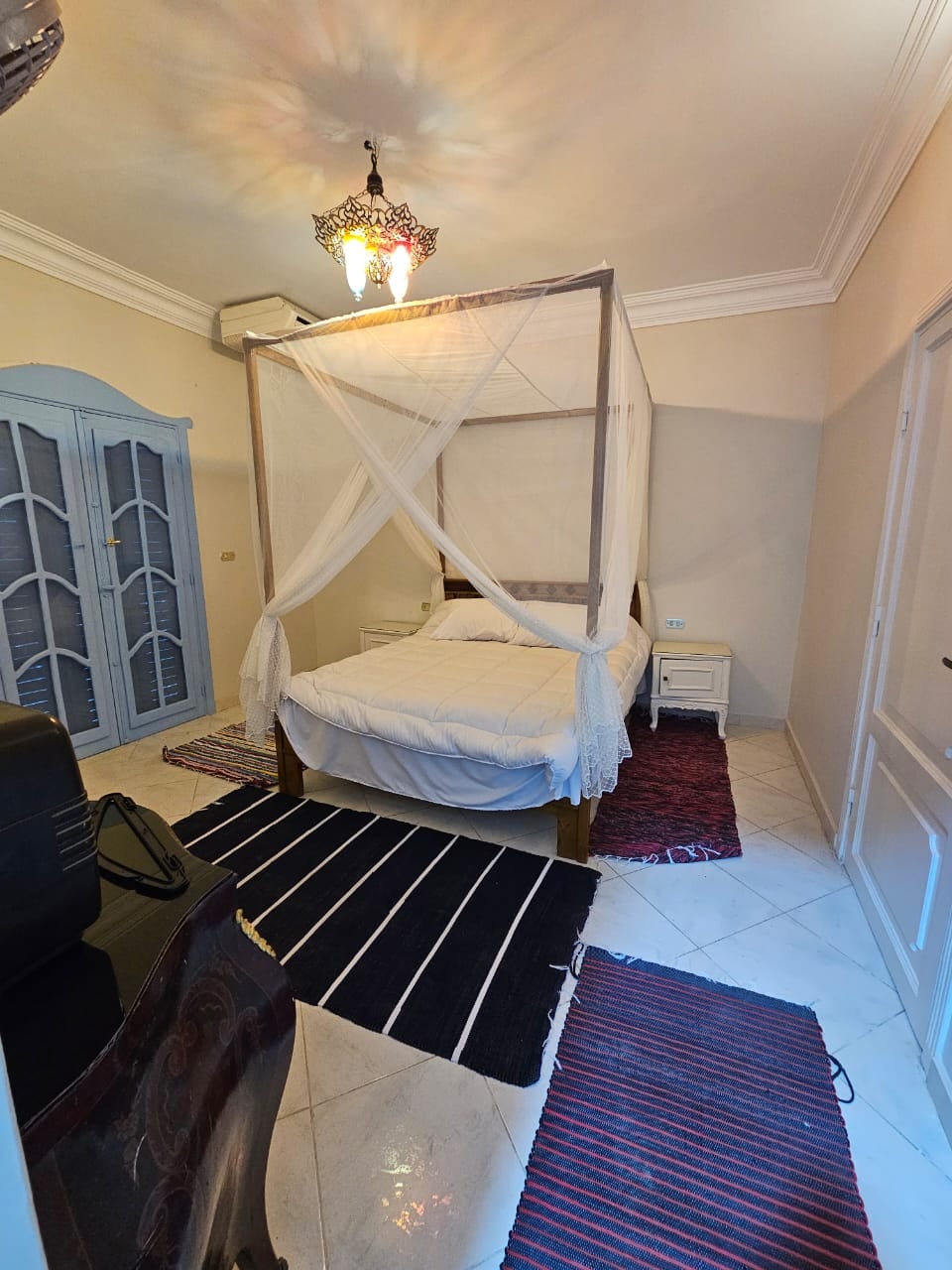 Pis senzill i acollidor de 3 dormitoris a Pyramids Gardens, ideal per a viatgers econòmics. A només 7 minuts de les piràmides i del Gran Museu Egipci, a 15 minuts d'El-Sheikh Zayed i a 20 minuts del centre de la ciutat. La casa disposa de 2 dormitoris amb aire condicionat, 2 banys, 2 televisors i una cuina totalment equipada. Els luxes addicionals inclouen una PlayStation 5, una subscripció a Netflix, una shisha i un altaveu Bluetooth per al teu gaudi. Un allotjament perfecte a prop de les atraccions emblemàtiques del Caire!