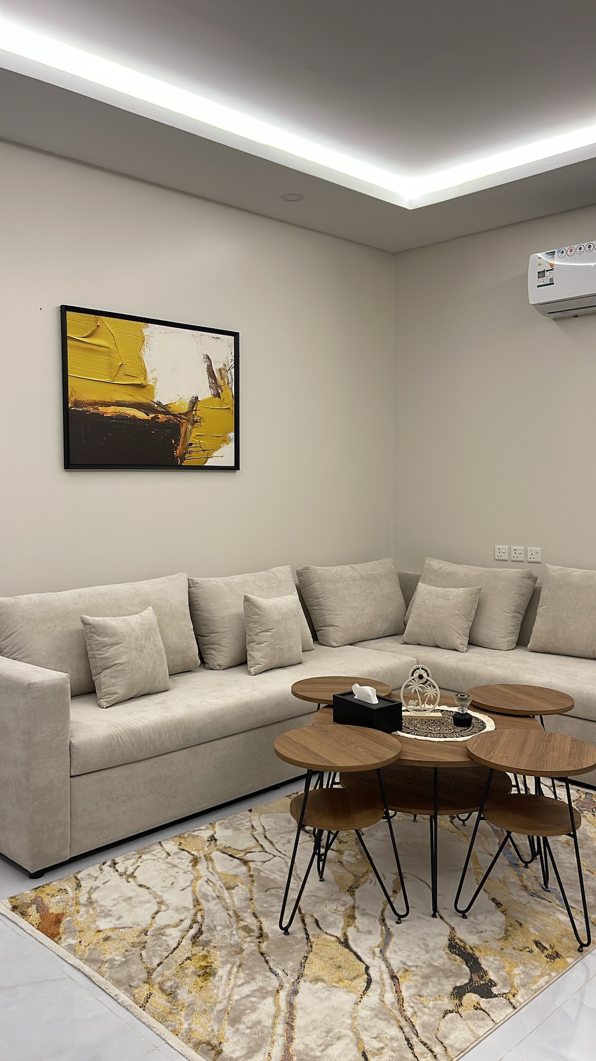 Una residència tranquil·la i elegant que consta d'un dormitori, una sala d'estar, un racó de cuina i un bany. També disposa de wifi, canals per satèl·lit, una cafetera, un matalàs addicional quan calgui i un calefactor a l'hivern. La residència és al cor de la ciutat, a prop de tots els serveis i molt a prop d'una mesquita. És possible que no necessitis un cotxe, i és molt a prop dels famosos cafès de Khafji i a prop del centre comercial Al-Othaim i hi ha aparcaments disponibles.