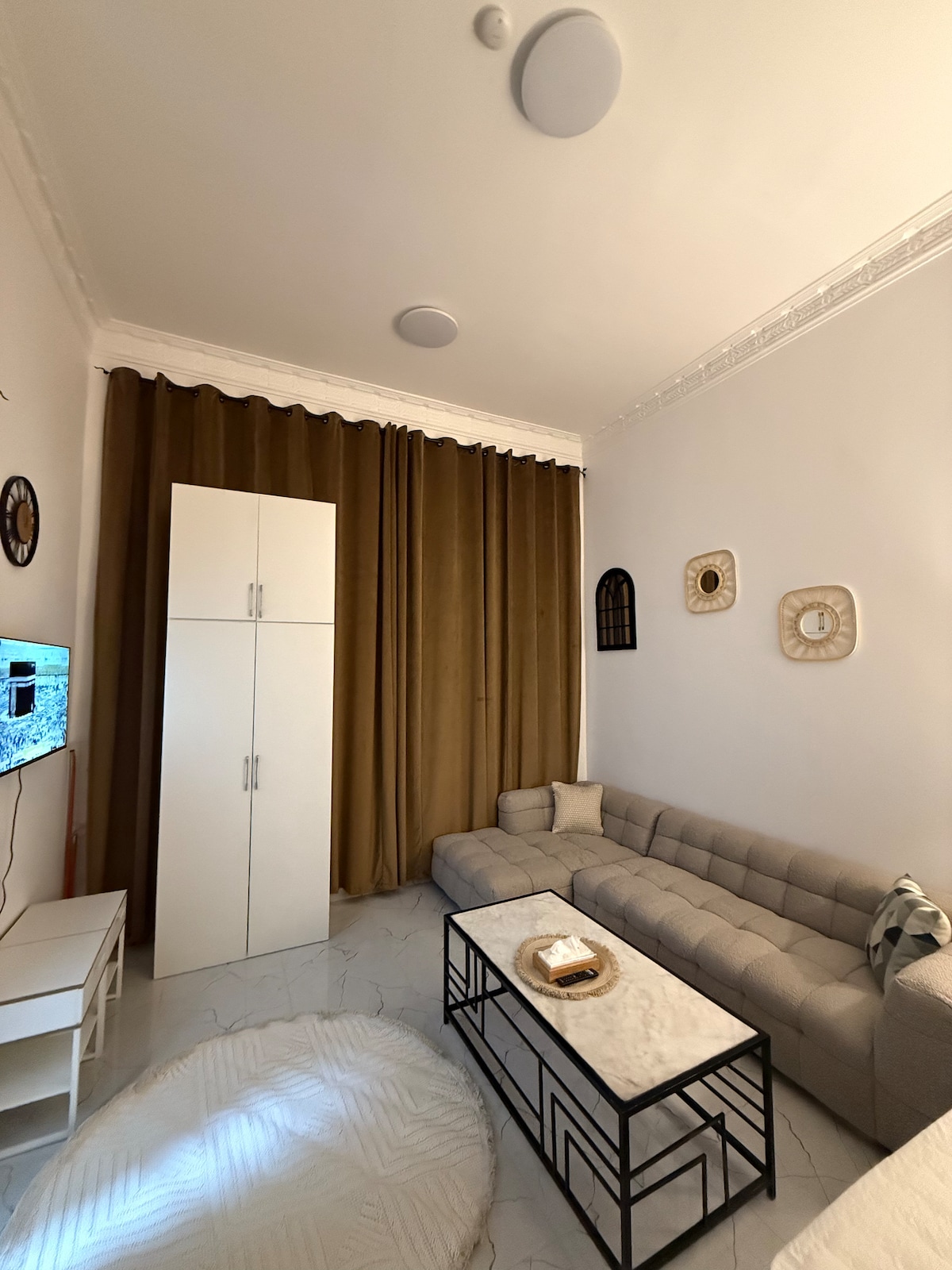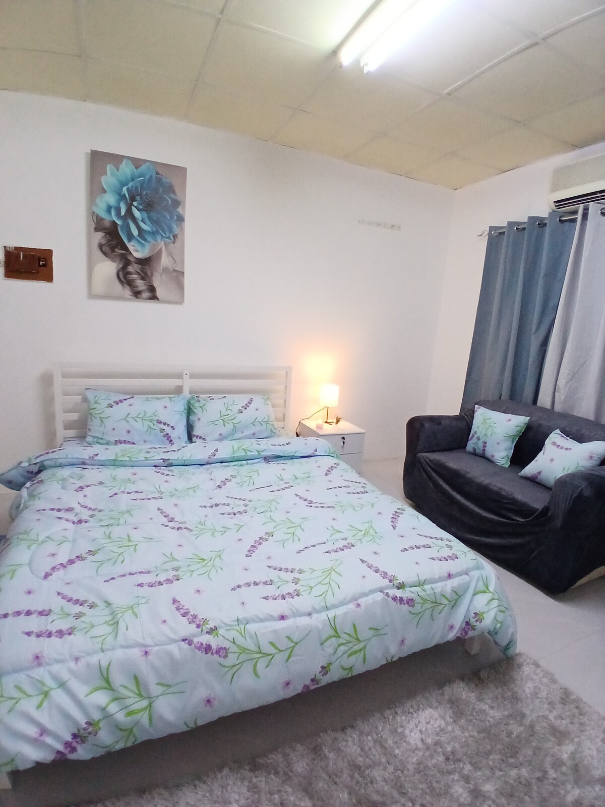 Un apartament gran i totalment moblat de 2 habitacions al centre d'Al Ain. Disposem de wifi ràpid i fiable, fibra de ~500 Mbps. Apte per a estades curtes o llargues i a prop de botigues, restaurants, cafeteries i centres comercials. L'allotjament inclou una sala d'estar, dos banys i una cuina totalment equipada amb nevera, fogons i rentadora. Cada habitació té aire condicionat i la sala d'estar té un televisor intel·ligent de 65 polzades. Neteja i comoditat per a famílies i visitants, amb un registre d'entrada fàcil i un servei d'assistència ràpid.