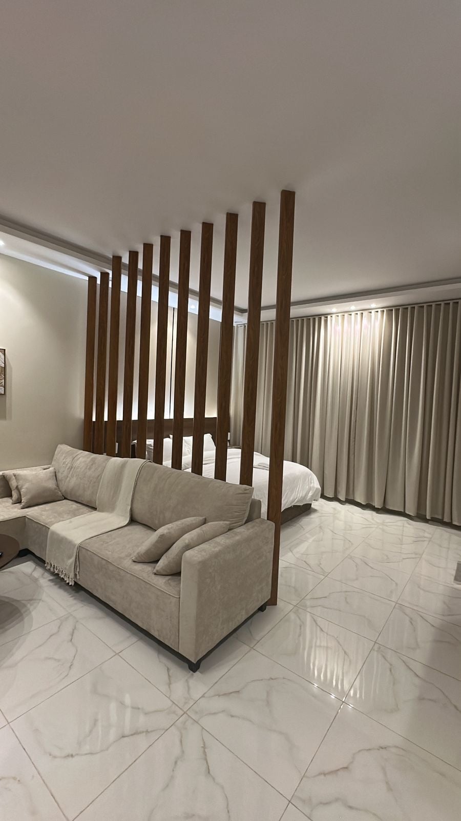 شقه فخمة بمدخل مستقل ودخول ذاتي على بعد دقيقه واحده من العثيم مول صممت هذة الشقة لتوفر لك الراحة و الفخامة والخصوصية التامة وتبعد عن المطار 10 دقائق وبالقرب من جميع الخدمات الرئيسية والمطاعم والكافيهات المشهورة وتحتوي الشقة أيضاً على شاشة تلفزيون 75 بوصة ركن قهوة انترنت أدوات عناية شخصية ومجفف شعر ونتمنى لكم إقامة سعيدة