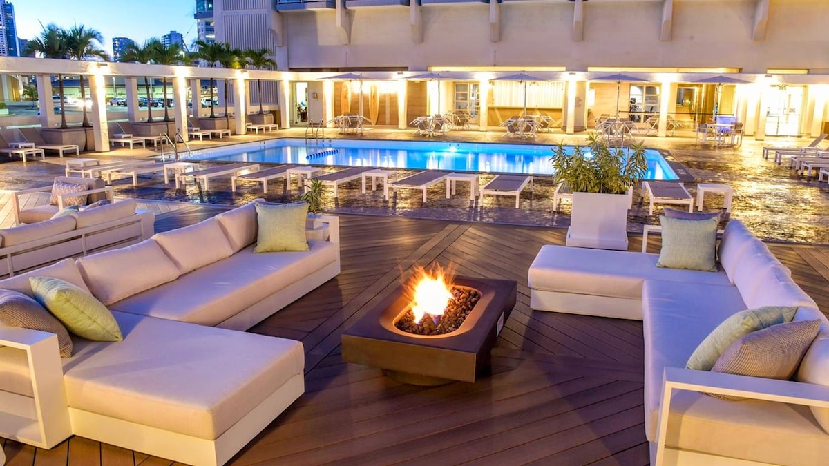L'Ala Moana Hotel és un sofisticat refugi situat al cor de Honolulu, Hawaii. Relaxa't i gaudeix d'unes postes de sol increïbles des del balcó. * Cost per a l'hoste: a. Tarifa d'arribada /emissió de claus de 50 $/una vegada b. Tarifa de complex hoteler o de serveis de 30 $ per nit Aquesta tarifa s'aplica durant l'arribada a la recepció de l'hotel. Requereix un document d'identitat amb foto (document d'identitat amb foto, passaport o permís de conduir) i targeta de crèdit