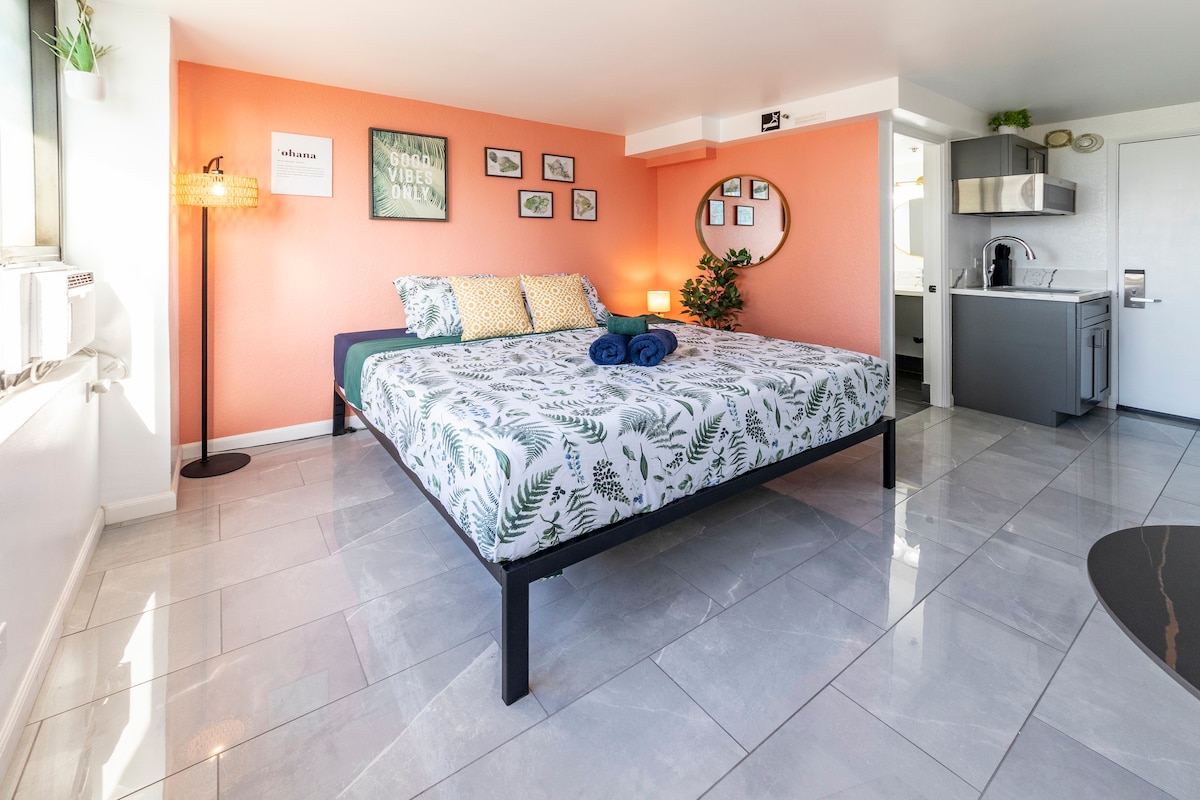 Relaxa't en aquest estudi actualitzat per a 2 persones amb cuina americana, wifi, zona d'estar independent i espai de treball de 55". ★ No cal un cotxe: camina fins a les botigues, platges i restaurants de Waikiki o puja a un autobús en una de les parades properes per arribar a gairebé tots els racons de l'illa. ★ Dona un cop d'ull al nostre llibre de l'habitació amb informació seleccionada o demana accés al nostre lloc web (WaikikiAlohaTravel) per ajudar-te amb la planificació del viatge. ★ Gaudeix de viatges sense preocupacions: llençols, xampú, gel de dutxa proporcionat. ★ Consulta la secció d'altres detalls per obtenir informació important.