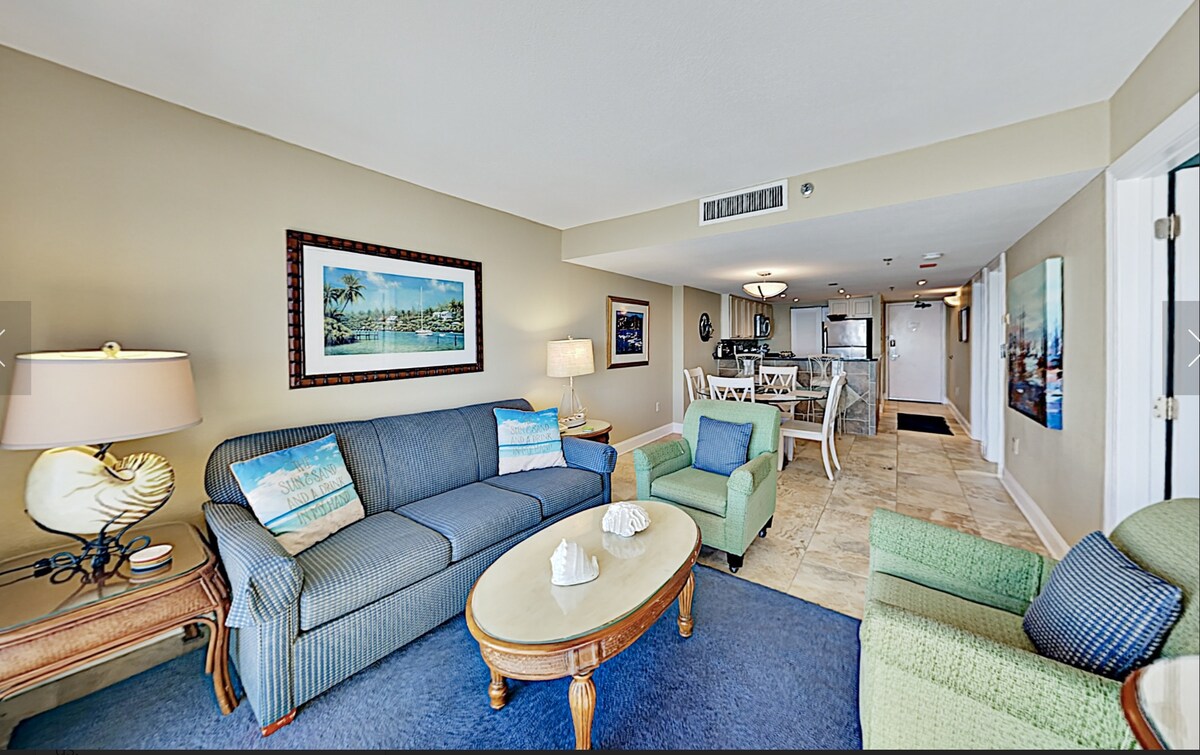 Direct Oceanfront Balcony Unit 16th floor. Has de tenir més de 23 anys per llogar l'associació de propietaris. New Reno Keyless entry. Dormitori «king size» amb capacitat per a 6 persones. 2 cadires de platja i para-sol per a l'ús dels hostes. Opció de llit «king size» i futons (nen), doble Murphy i sofà llit, matalassos millorats. Electrodomèstics de mida completa. BarTiki al costat de la piscina, restaurants, rius tranquils interiors/exteriors, banyeres d'hidromassatge, piscines, piscines per a nens i instal·lacions d'aigua. Aparcament gratuït, internet, Fire Stick i la possibilitat d'iniciar sessió al servei de streaming disponible.