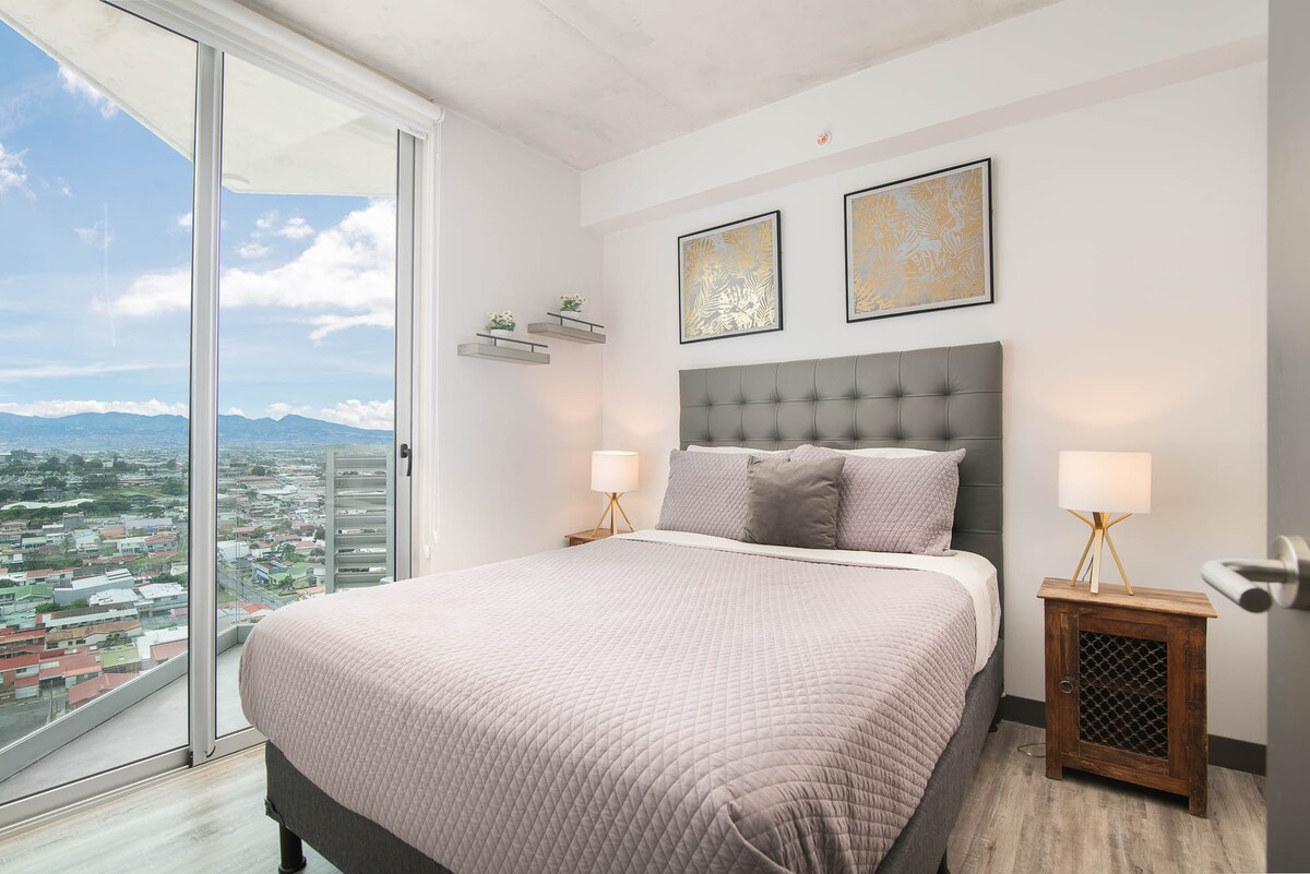 🌟 Stunning & Spacious 1BR/1BA Condo! Perfect for medical tourism, remote work, business, or family stays, in the most exclusive area of Escazú! Enjoy breathtaking Central Valley & mountain views 🌄, just minutes from Multiplaza Mall, top dining, pubs, shops & artisanal cafés. 🚗 Private parking, 24/7 security, elevator & stairs. Plus, relax with a pool, gym & lightning-fast 100Mbps WiFi! 💻🏊♂️💪 Cozy comfort & convenience—experience it all and leave your journey with us !- AC in master BR ✨