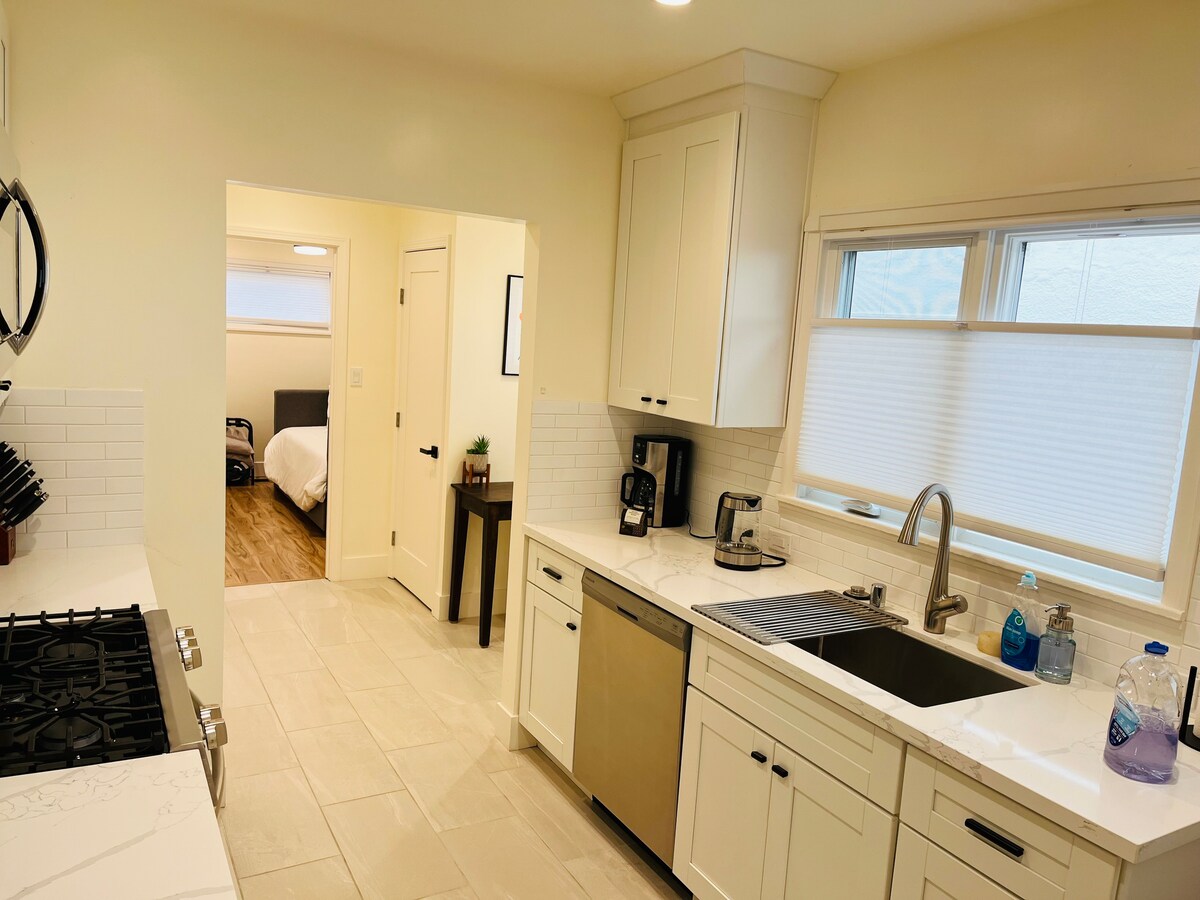 Modern In-law suite close to shopping, restaurants short walk to the beach. Local transportation and minutes to the Oakland Airport.. I live upstairs, I’m available via text. Please let me know if there’s anything I can do to make your stay exceptional. Because I occupy the top two floors of the house, it’s a possibility that you may hear “life” happening upstairs from the suite. No children just a big fluffy dog that behaves like a cat. It’s a fairly quiet house.