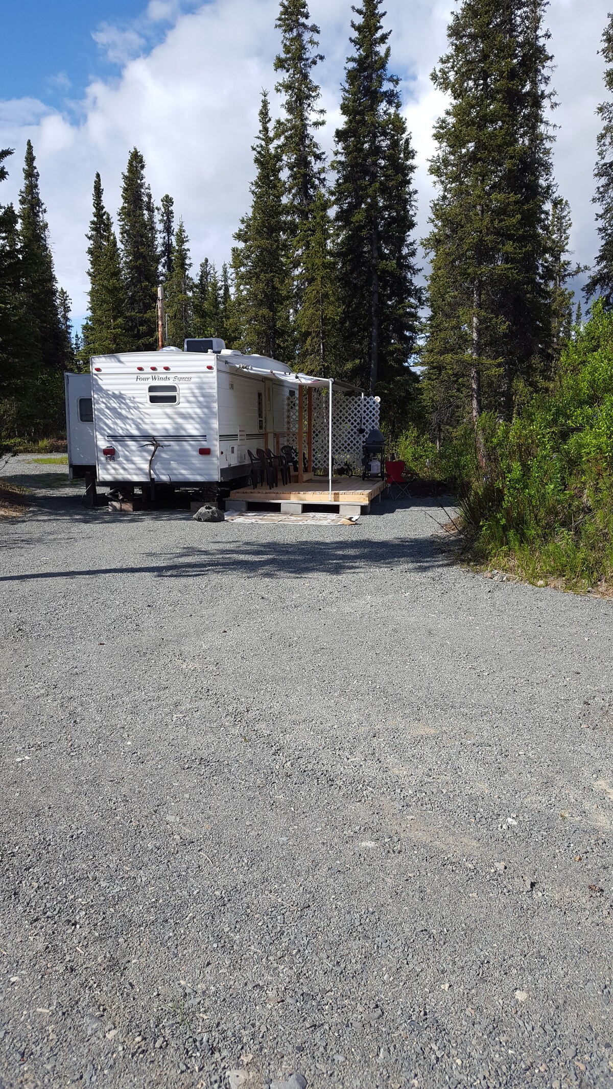 Autocaravana còmoda situada en un carreró sense sortida a les afores del parc Denali. Un gran restaurant i també un pub de pizza situat a només 10 minuts i l'entrada al parc és a només 10 minuts més. És un recorregut molt pintoresc. Cantwell i l'inici de Denali Hwy són a només 5 minuts en l'altra direcció. Hi ha una coberta i una barbacoa de gas per al teu ús. Estarà net i serà còmode per a la teva estada. Les parelles amb un nadó o un nen petit són benvingudes en aquest lloguer doble d'1 habitació.