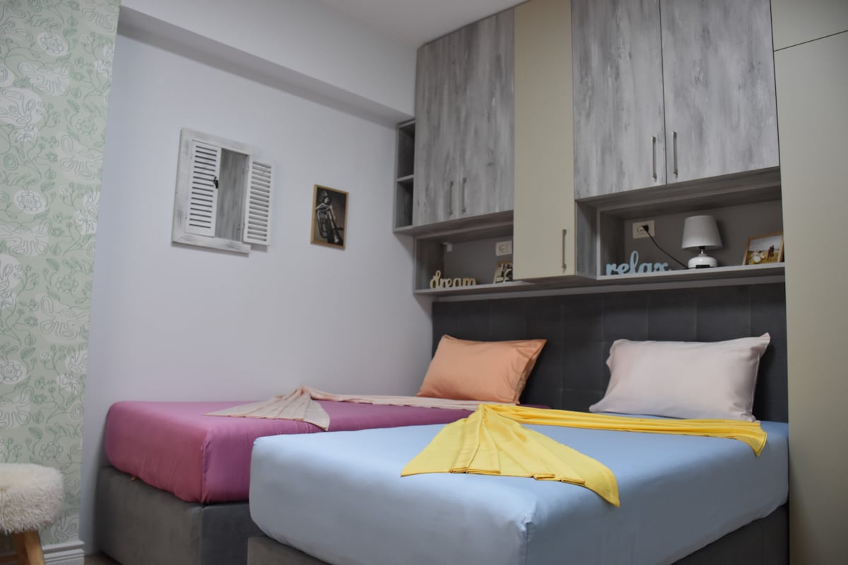 Pis nou (reformat l'abril de 2024) en una de les zones més encantadores de Vlorë. Mar cristal·lina, tranquil·litat i complex d'edificis davant de l'illa de Sazan i la península de Karaburun. A 100 m del mar, a 2 km de Lungomare, a 6 km de Kuzum Kabà i Piazza Indipendenza. El Marebello ofereix un jardí