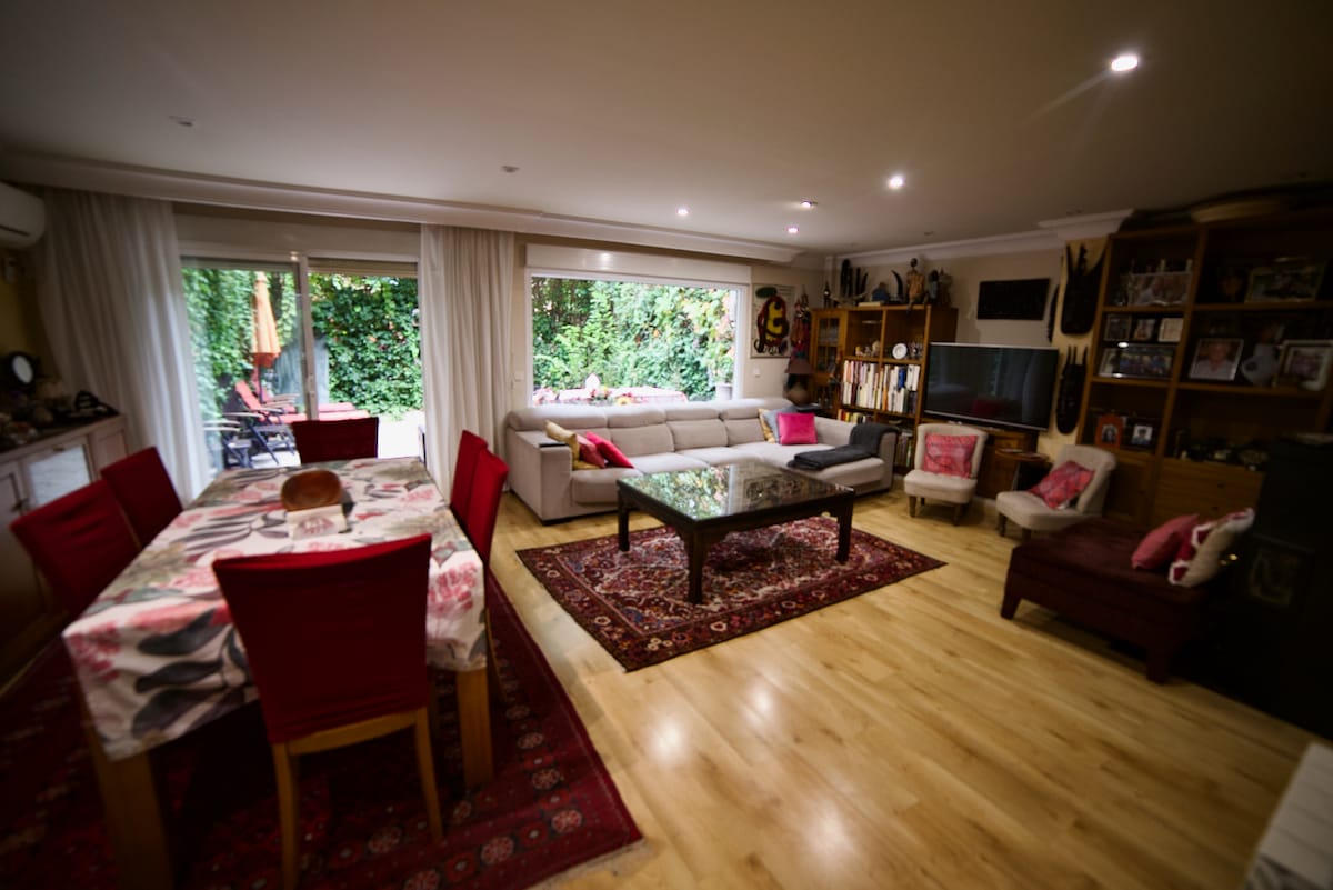 Et donem la benvinguda al nostre encantador pis a Madrid! El nostre espai acollidor disposa de tres dormitoris tranquils, perfectes per allotjar fins a cinc hostes. Hi trobaràs quatre llits còmodes, que et permetran dormir bé després d'un dia intens explorant la ciutat. L'aparcament al carrer és de pagament, però hi ha una zona d'aparcament gratuït a només 4 minuts de la casa. Pots arribar fàcilment al centre de Madrid en només 20 minuts gràcies a l'estació de metro que hi ha a prop.