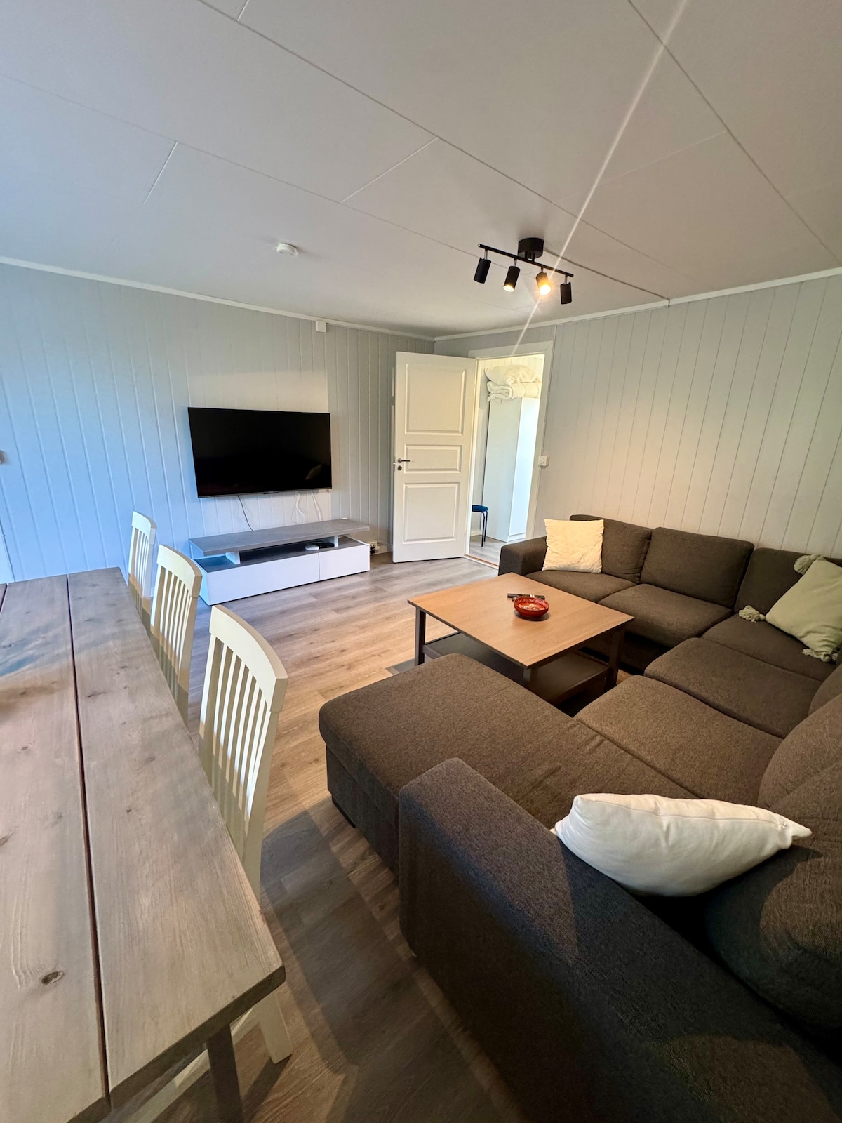 Ta med familien eller vennegjengen på en helgetur eller en ferietur til vakre Nerås. Leiligheten er fullmøblert med blandt annet smarttv, det du måtte trenge på kjøkkenet, og har en flott veranda med utemøbler og grill. Det er to soverom, ene rommet har køyesenger og en med dobbeltseng. Det er to bad, ene badet har toalett og det andre dusj. Hytten har det du trenger til under oppholdet, inkludert sengeklær og håndduk. Leiligheten ligger ca 10 minutter kjøreavstand til vestnes sentrum
