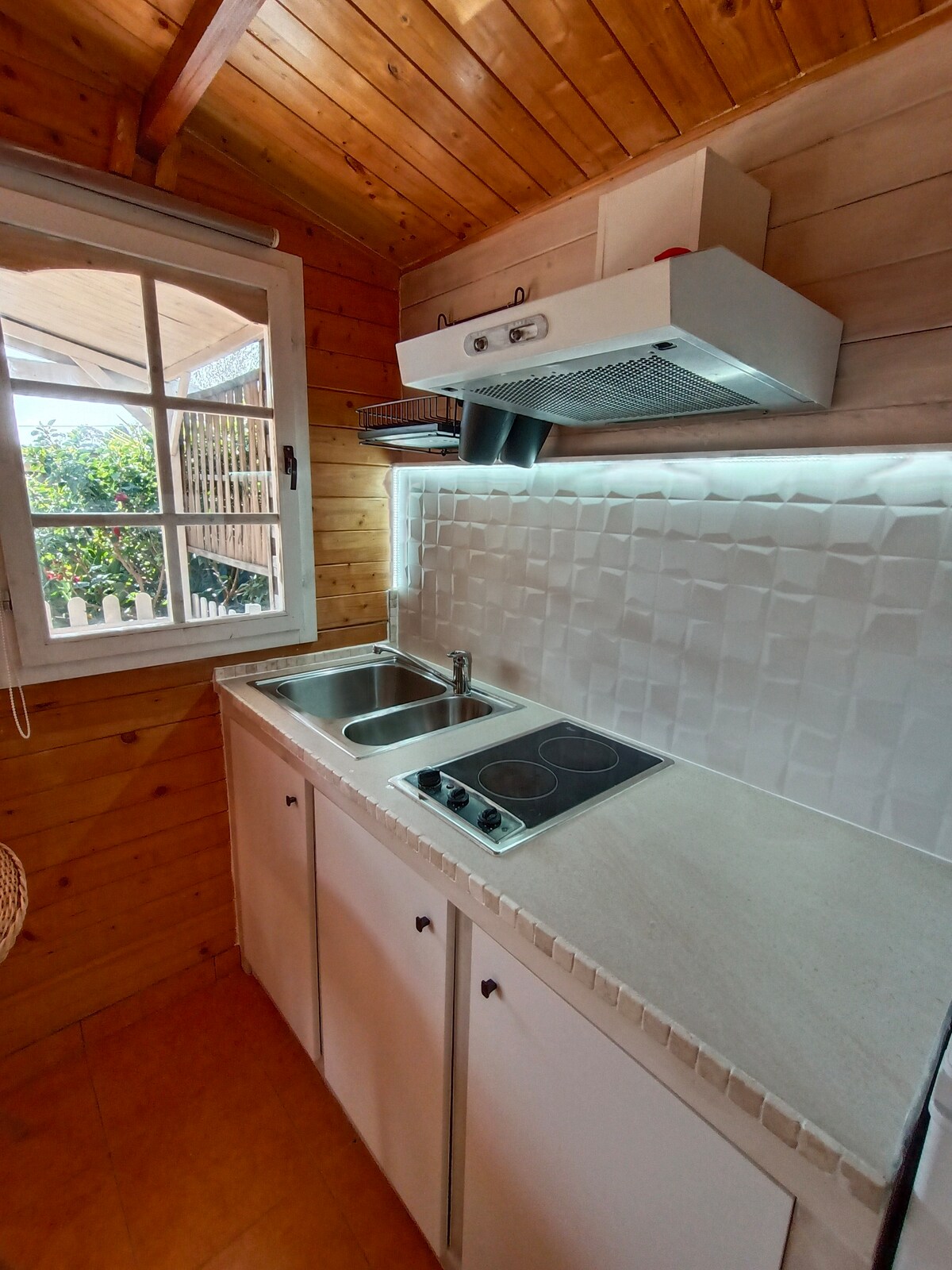Bungalou de fusta amb aire condicionat.