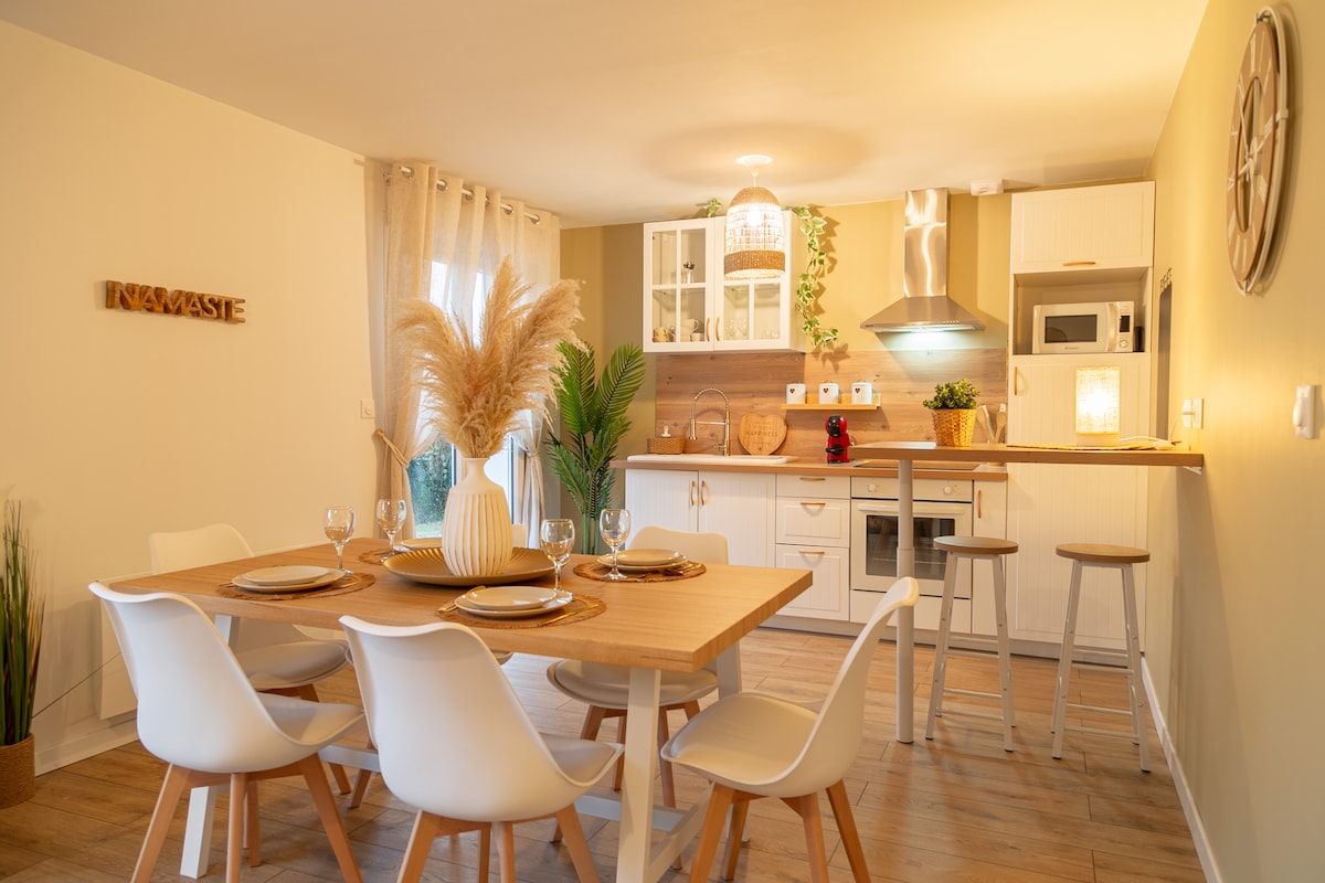 Casa de cocooning amb una decoració càlida per passar moments agradables amb la família, amb amics o viatgers de negocis. Situat a la vora de l'Eure i al cor de la ciutat històrica i medieval de PONT DE L'ARCHE, gaudiràs dels seus molts actius:(botigues locals, bosc, via verda, Lac de Poses per a activitats esportives, pesca ...). Vine i descobreix aquesta magnífica regió de Normandia al peu de l'A13, a 20 minuts de Rouen, a menys d'1 hora de la sublime costa de Normandia i a 1 hora de París.