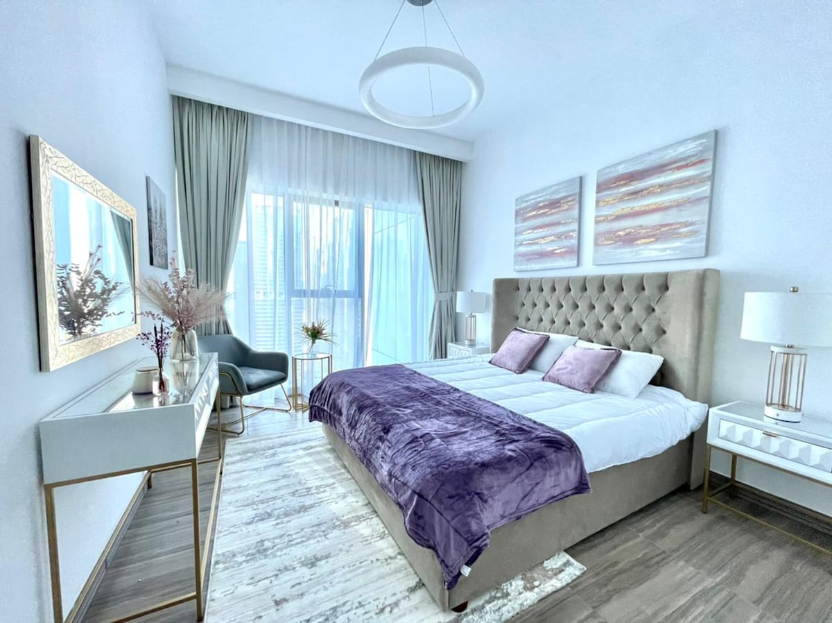 Et donem la benvinguda al nostre acollidor apartament d'un dormitori de 75 metres quadrats. El nostre pis està situat a prop de l'estació de metro DMCC en una de les ubicacions més còmodes de Dubai: les Torres del llac Jumeirah. En aproximadament 7 minuts pots caminar fins al metro. Tens accés directe a bicicletes/escúters de lloguer. La zona alberga més de cent restaurants, cafeteries i terrasses per seure al voltant del llac Almas. L'apartament té internet d'alta velocitat de 500 mbps; un televisor intel·ligent i una cuina plena de necessitats.