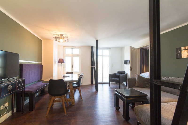 Asia Suite , direkt am Alten Strom – familienfreundlich/modern/exklusiv Diese Suite ist liebevoll eingerichtet und gänzlich neu komplett wie komfortabel ausgestattet: Flat-/Kabel-TV (3-fach), Stereo-Radio/CD, Internet (wlan) sowie komplette Küchenzeilen (Cerankochfeld, Backofen, Geschirrspüler, Kühlschrank mit Gefrierfach, Kaffeemaschine, Toaster, Wasserkocher etc. ). Unsere Asia-Suite empfängt Sie mit einer ganz besonderen Atmosphäre verbunden mit perfektem Komfort. Stilvolle Asia-Möbel,
