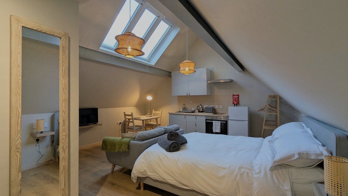 Et donem la benvinguda al Chained Oak Loft Apartment. Situat just davant del parc temàtic Alton Towers, que forma part de Chained Oak Farm B&B, estem ubicats en els seus propis terrenys de 24 hectàrees de Woodland amb vistes impressionants a la bonica zona rural de Churnet Valley. Amb capacitat per a 5 persones, el loft es troba a sobre del bloc estable reconvertit que inclou acabats moderns de camp i encant rústic que ha estat dissenyat per oferir un allotjament de primera qualitat en un bell entorn rural.