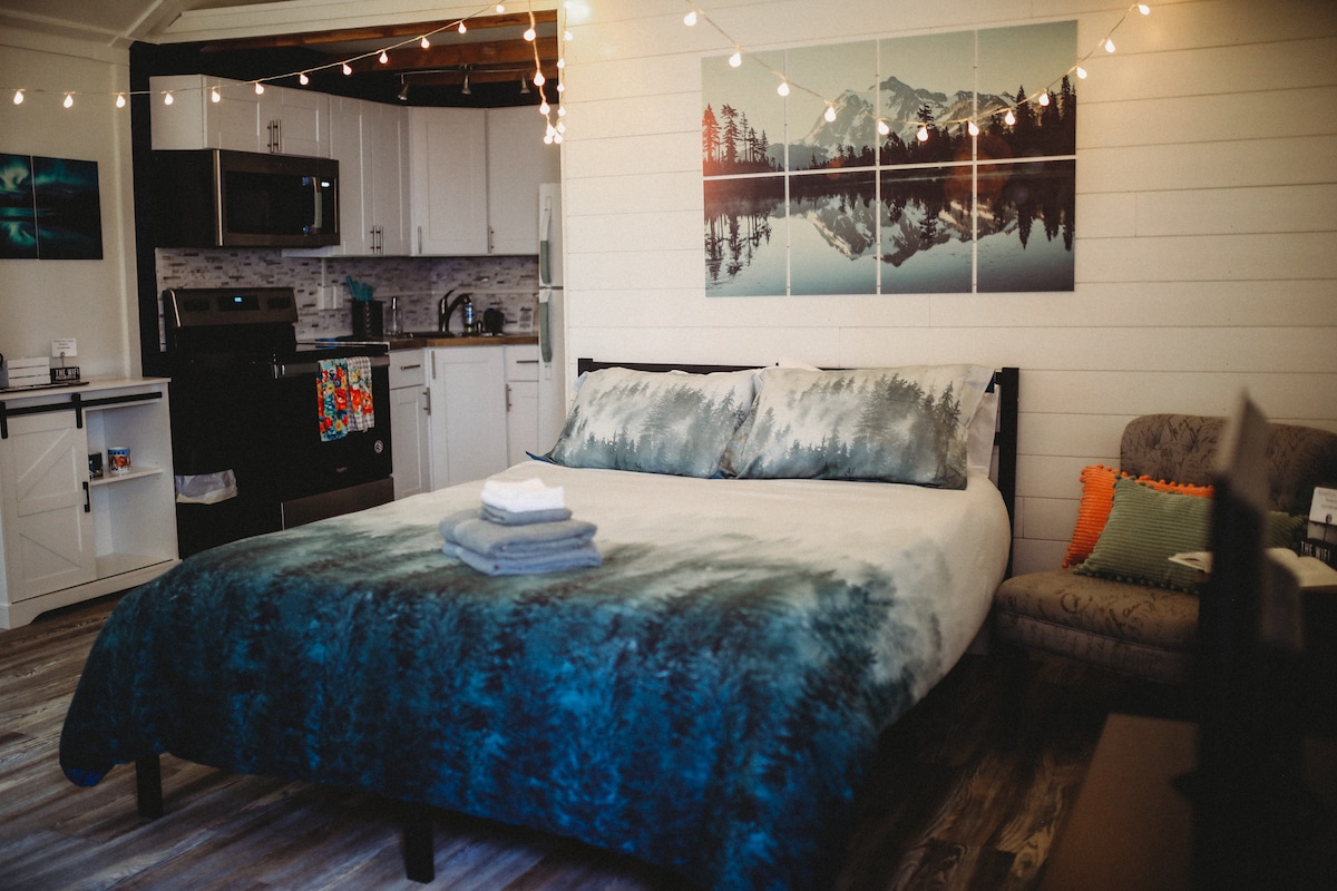 Preciosa minicasa, construïda el gener del 2019 per un talent constructor local, molts hostes s'han enamorat d'aquest allotjament. No hi ha aigua corrent, però la caseta està plena d'ampolles d'aigua de 5 galons a Fox Springs. Cuina completa, llits còmodes, internet súper ràpid, televisió a punt per a la transmissió, llibres per acurrucar-se i llegir, a prop de botigues, restaurants , serveis de la ciutat, mentre està amagat en un terreny privat boscós.