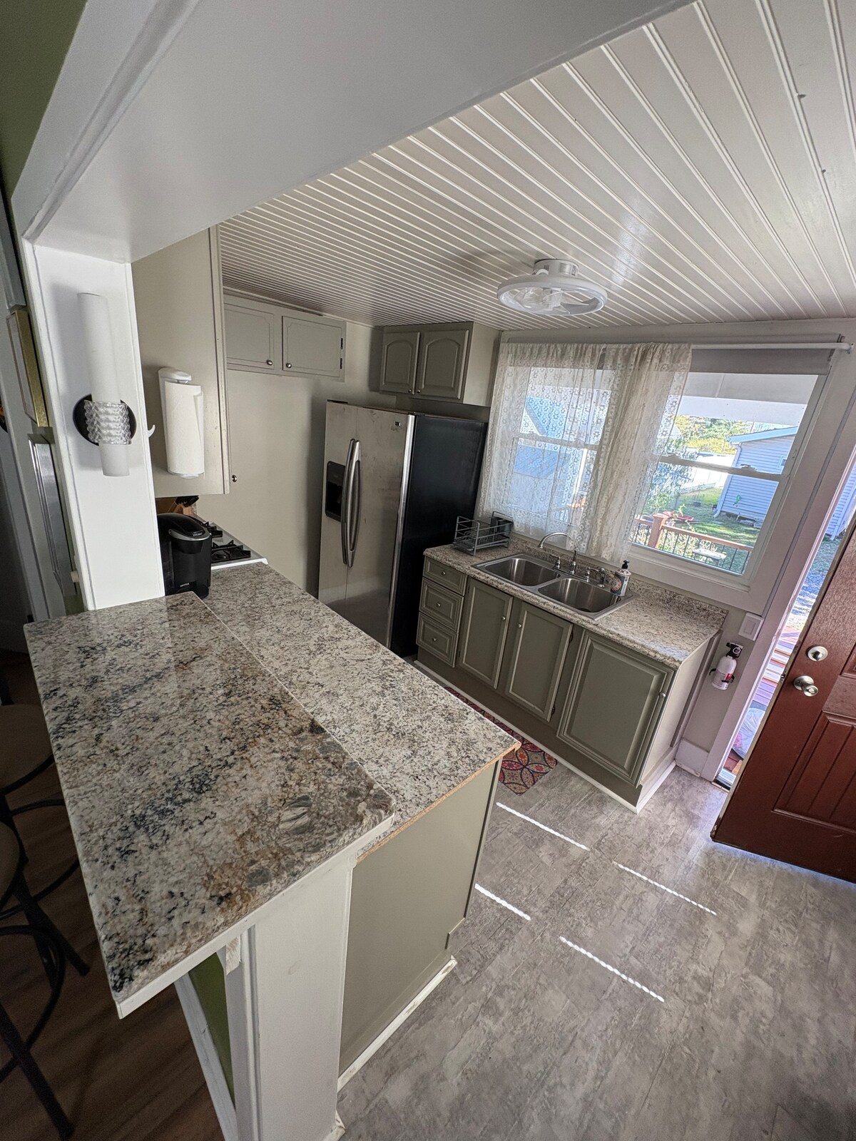 Acollidora suite d'hostes adjunta a la casa principal en un poble de cabanes de troncs. Cuina completa, menjador, estufa de llenya, llit de matrimoni còmode, vestidor, jocs, 100 pel·lícules. Dutxa a peu i seient incorporat. Bugaderia amb porta a la zona de la terrassa, taules de bistrot, foguera. La sala d'estar abovedada té un seient d'amor extraïble per a un dormitori, televisor [ROKU, You Tube TV, HULU, Netflix, Amazon, Disney], reproductor de Blu-Ray i Google Nest Mini. Gaudeix de productes per esmorzar com ous frescos, sucs, llet, pa, cafè, te i la nostra pizzela casolana.