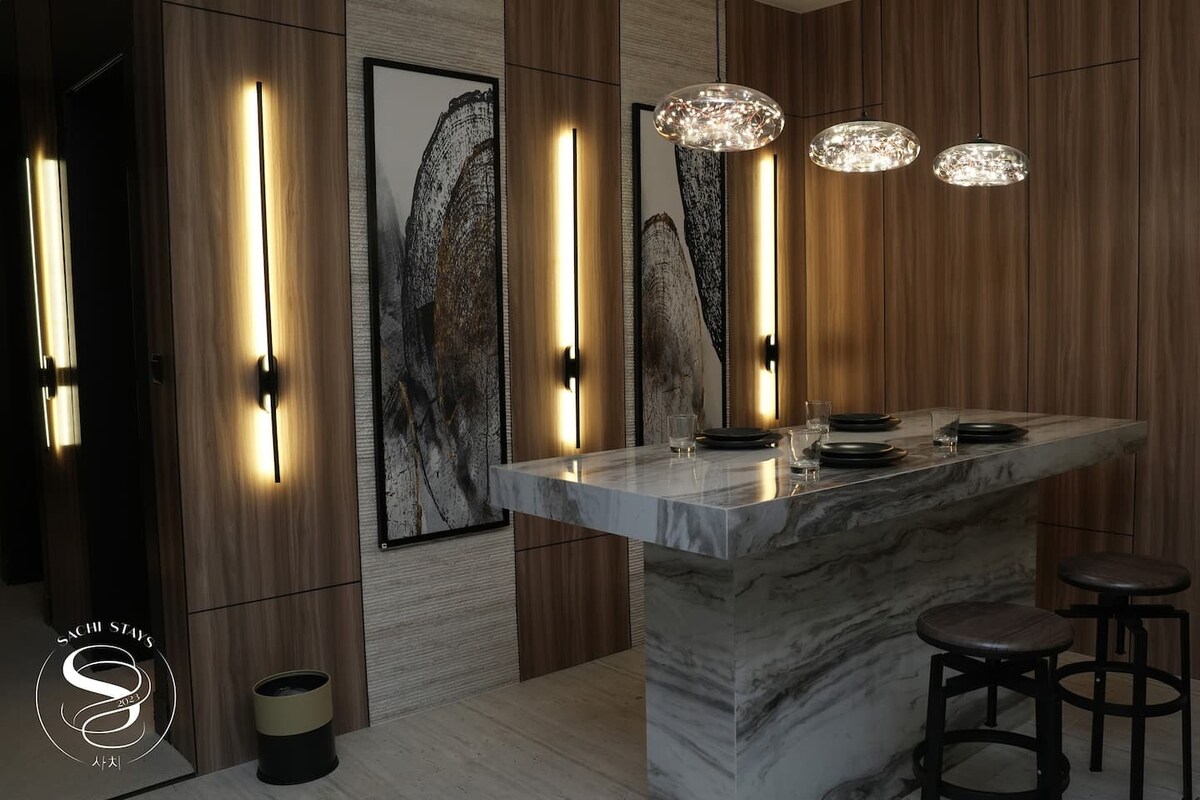 Aquest lloc únic té un estil dissenyat per oferir comoditat, elegància i un toc de luxe. Totes les habitacions estan ben moblades amb una decoració elegant i acabats d'alta gamma. Gaudeix d'equipaments i serveis de primera qualitat, com ara una experiència cinematogràfica, televisors de pantalla plana QLED, màquines de te/cafè, assecadors de cabells, tovalloles suaus i un paquet de benvinguda de cortesia. Tant si ets aquí per fer una escapada curta com per a una estada més llarga, et sentiràs com a casa amb les nostres comoditats modernes i tocs personalitzats.