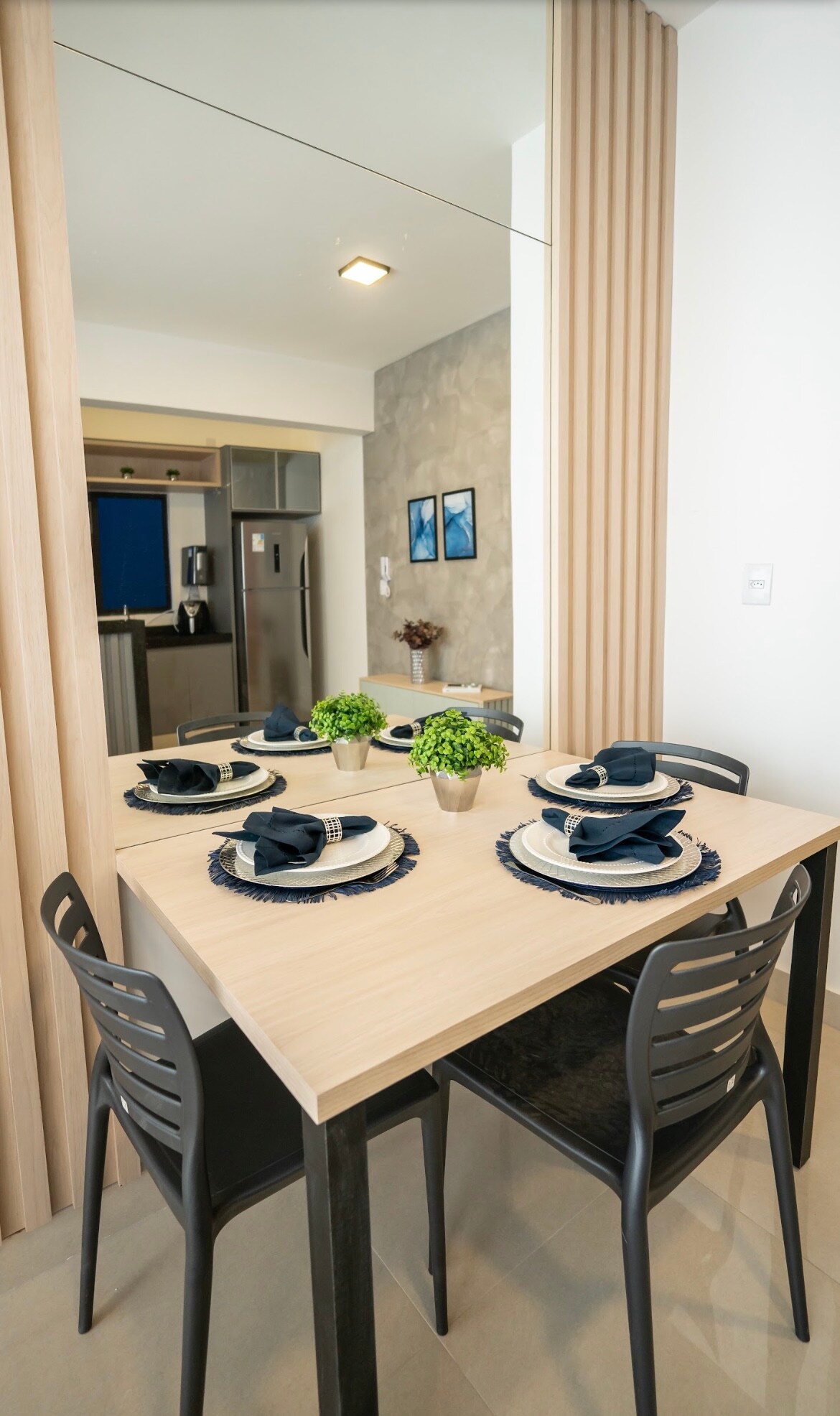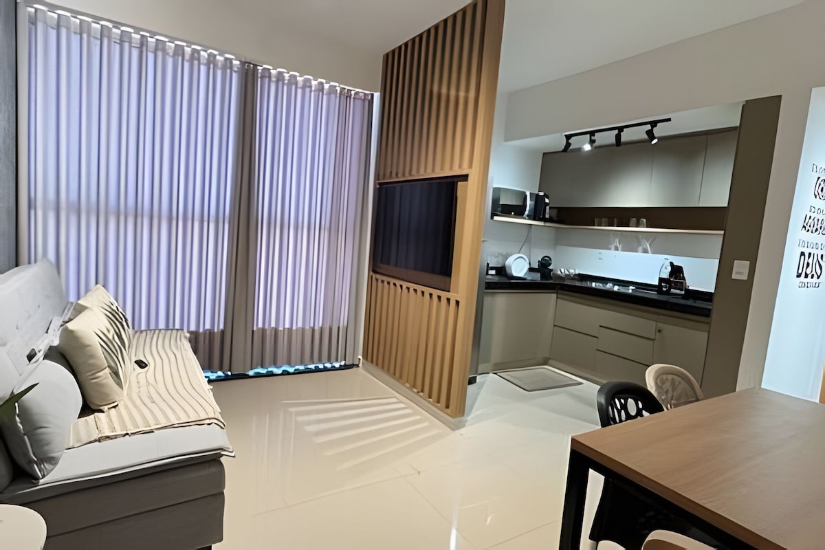 Pis modern a Residencial Vitória, Setor Universitário – Anápolis. Té capacitat per a 4 persones, amb wifi, aire condicionat, televisor intel·ligent, cuina completa i llençols i tovalloles, rentadora i assecadora, i una decoració moderna. El condomini té aparcament amb garatge privat, ascensor i fàcil accés a l'Av. Universitat, a prop de botigues, hospitals i universitats. Ideal per a famílies, executius, estudiants i turistes. Tot dissenyat perquè la teva estada sigui lleugera, pràctica i agradable