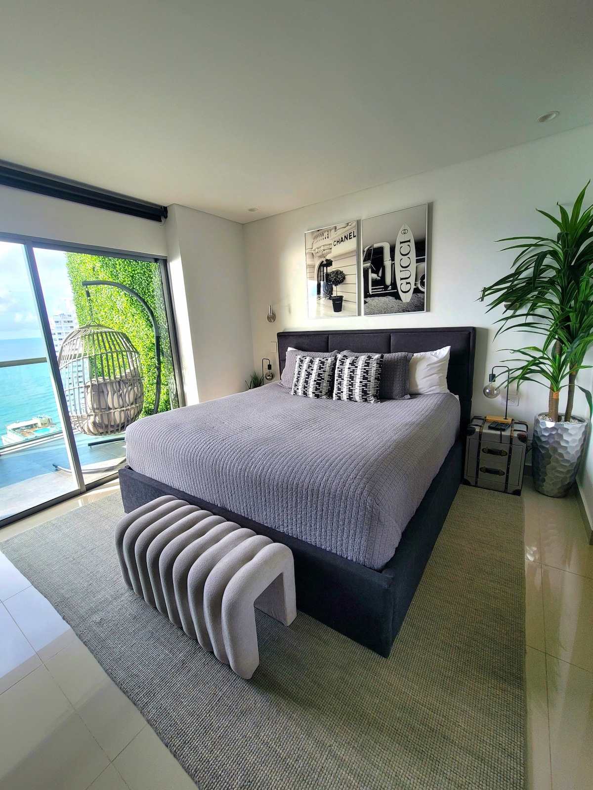 Discover luxury in our stunning Ocean View Penthouse located in Bocagrande, Cartagena. Perched on the 34th floor, relish panoramic city views and unforgettable sunsets. Enjoy the comfort of brand-new furniture and top-notch appliances. Experience top-tier amenities including 24/7 security, pool, 2 jacuzzis, gym, sauna & games room.Explore nearby dining, cafes, and 24hr supermarkets within a quick 5-minute walk. PLEASE NOTE: ONLY REGISTERED GUESTS CAN ACCESS THE CONDO. NO VISITORS ARE ALLOWED.