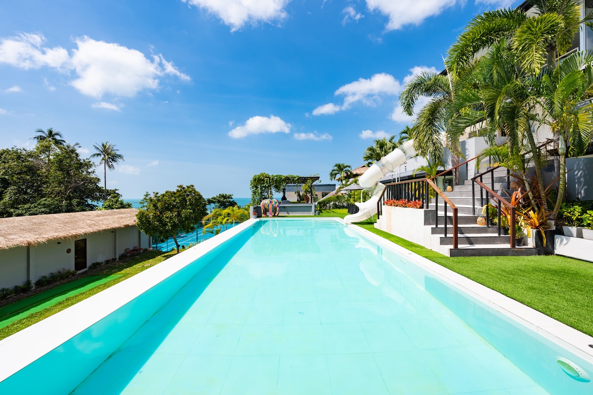 La teva vil·la de luxe amb piscina privada situada al cim del turó, a prop del famós hotel «Four Seasons». Més fotos al compte de Villa Insta: @thegreenvillakohsamui Independentment DE les 6 habitacions existents, EL PREU S'HA DONAT PER A una OCUPACIÓ DE 4 HABITACIONS (8 adults). Si vols ampliar la reserva per a habitacions addicionals, fes una sol·licitud. L'ESMORZAR està INCLÒS + la NETEJA INTERNA 8 hores i 6/7 dies + trasllats gratuïts a l'aeroport. La Julie, la teva amfitriona, et donarà la benvinguda i s'encarregarà de totes les teves necessitats