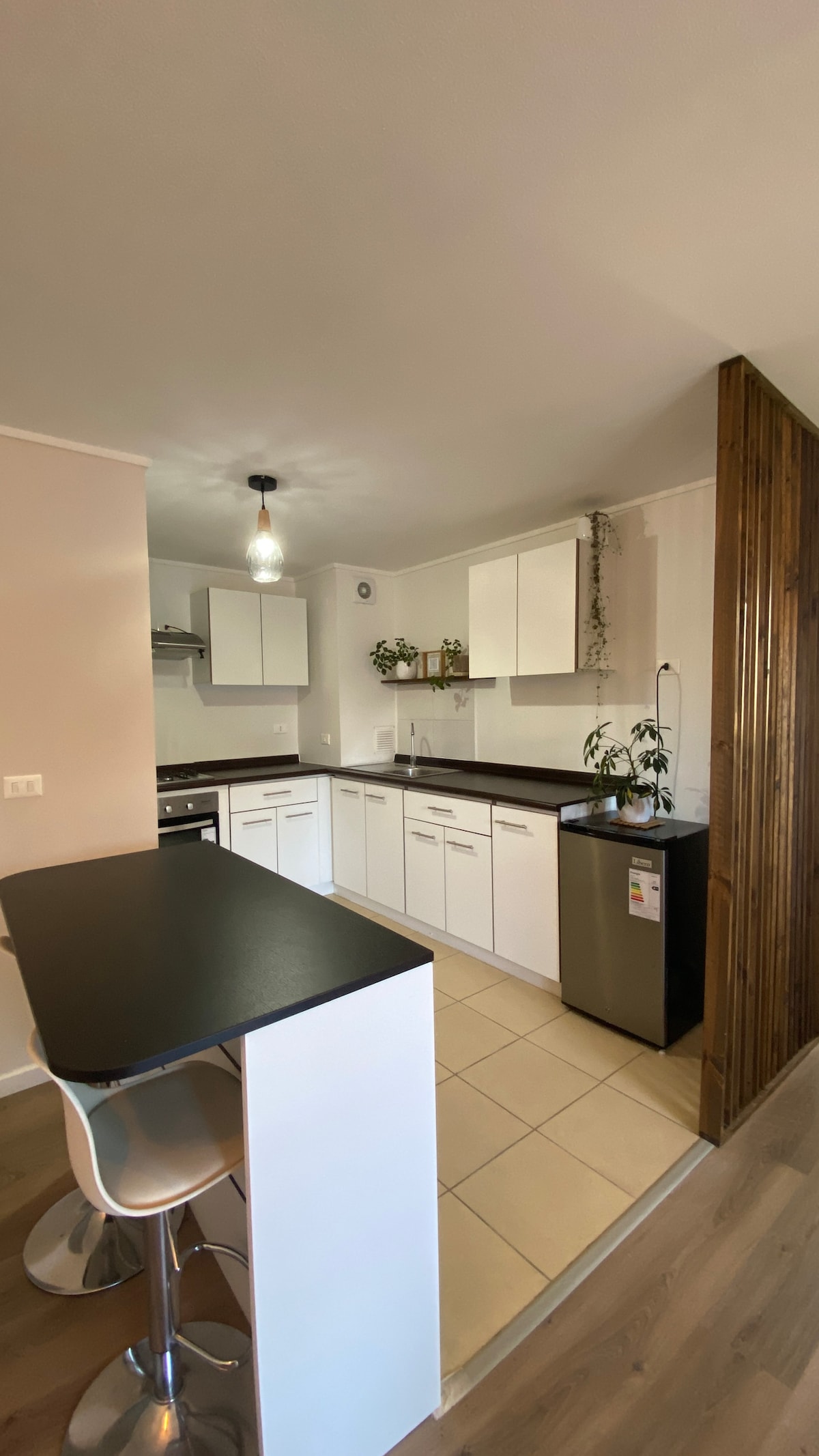 Gaudeix de la comoditat i l'estil d'aquest apartament totalment equipat, situat estratègicament amb accés a l'Av. Picarte i Costanera, a pocs minuts del centre de Valdivia. - Sala d'estar-menjador - Cuina totalment equipada: forn elèctric, campana, microones, rentavaixelles, nevera, tetera, torradora, cafetera i batedora. - Bany amb calefacció elèctrica, planxa, assecador i tovalloles. - Dormitori amb llit doble. - Terrassa -WiFi 800mbps - Aparcament cobert a l'interior de l'edifici.